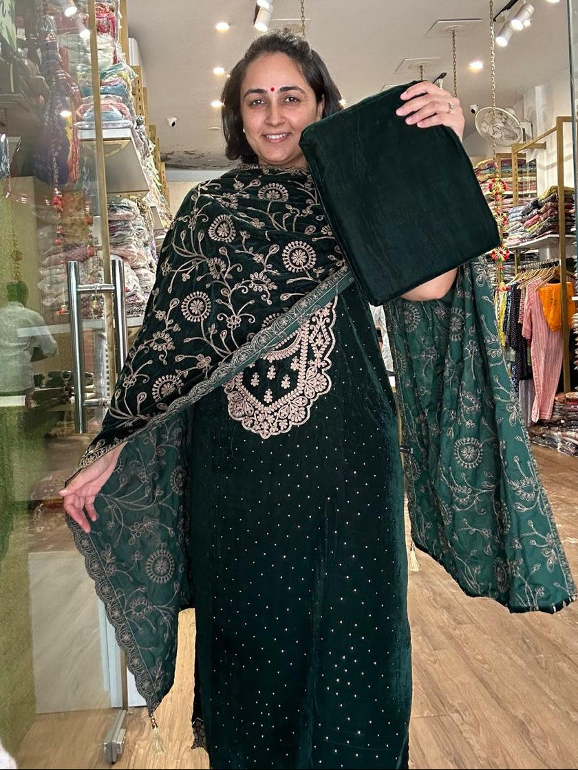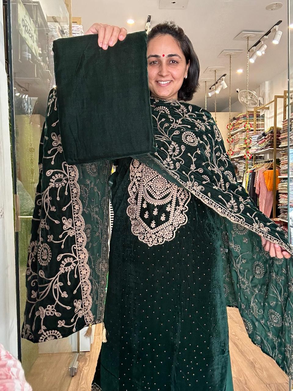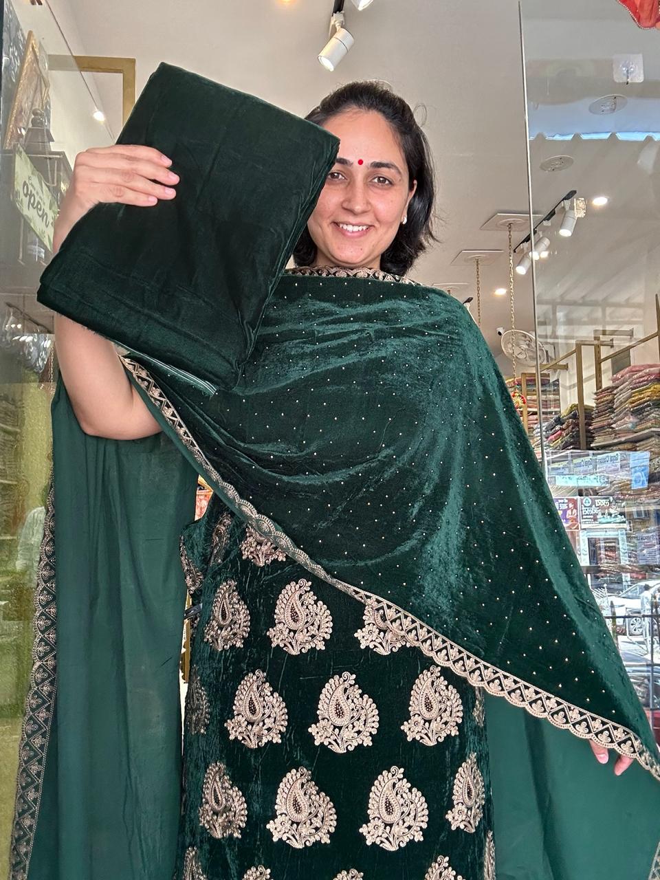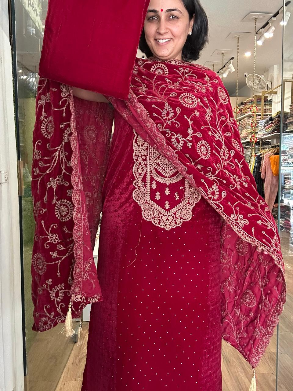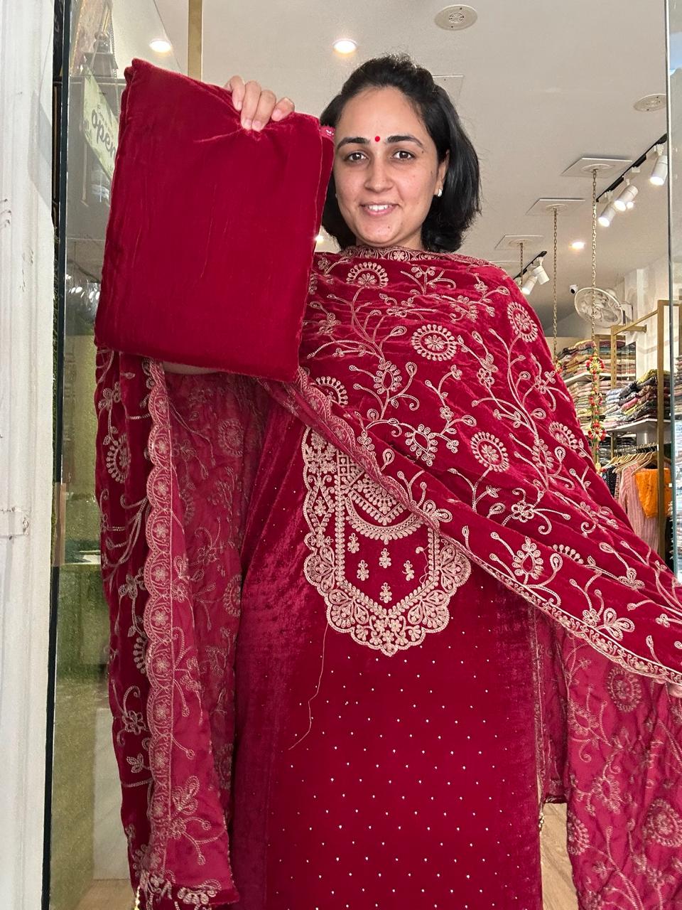 Luxury Velvet Embroidered Suit set with Rhinestone Dupatta