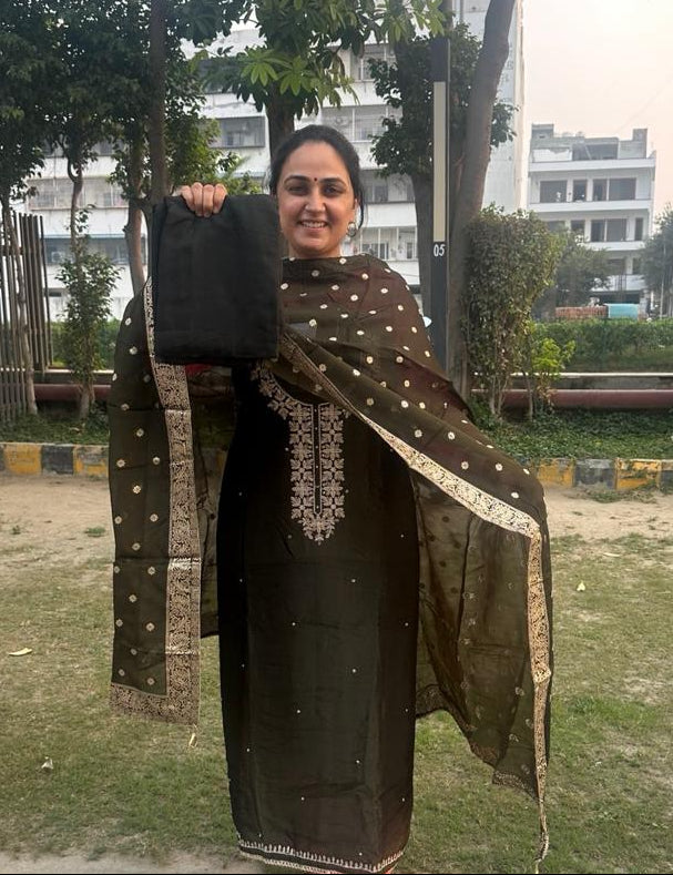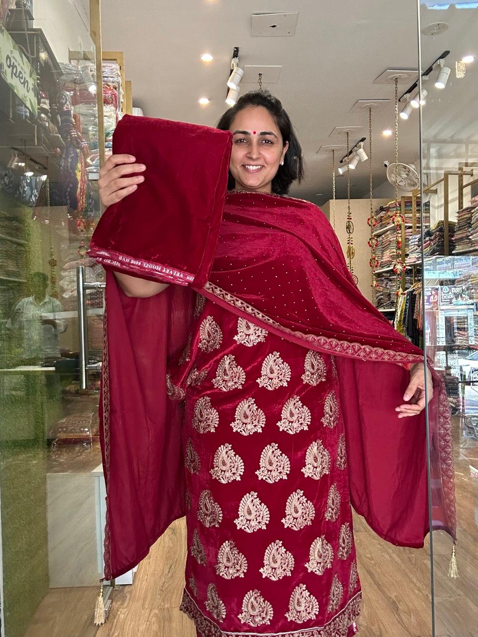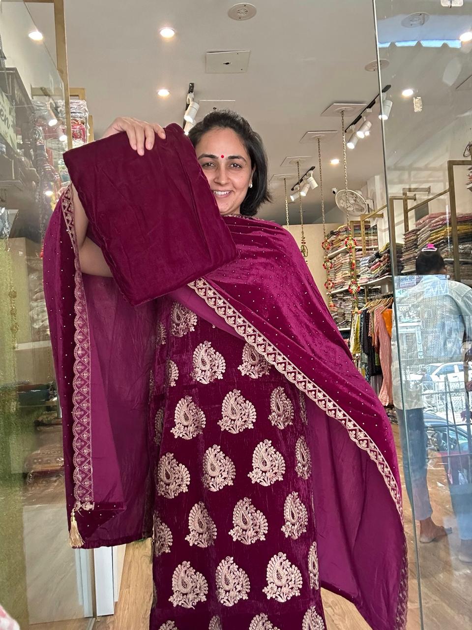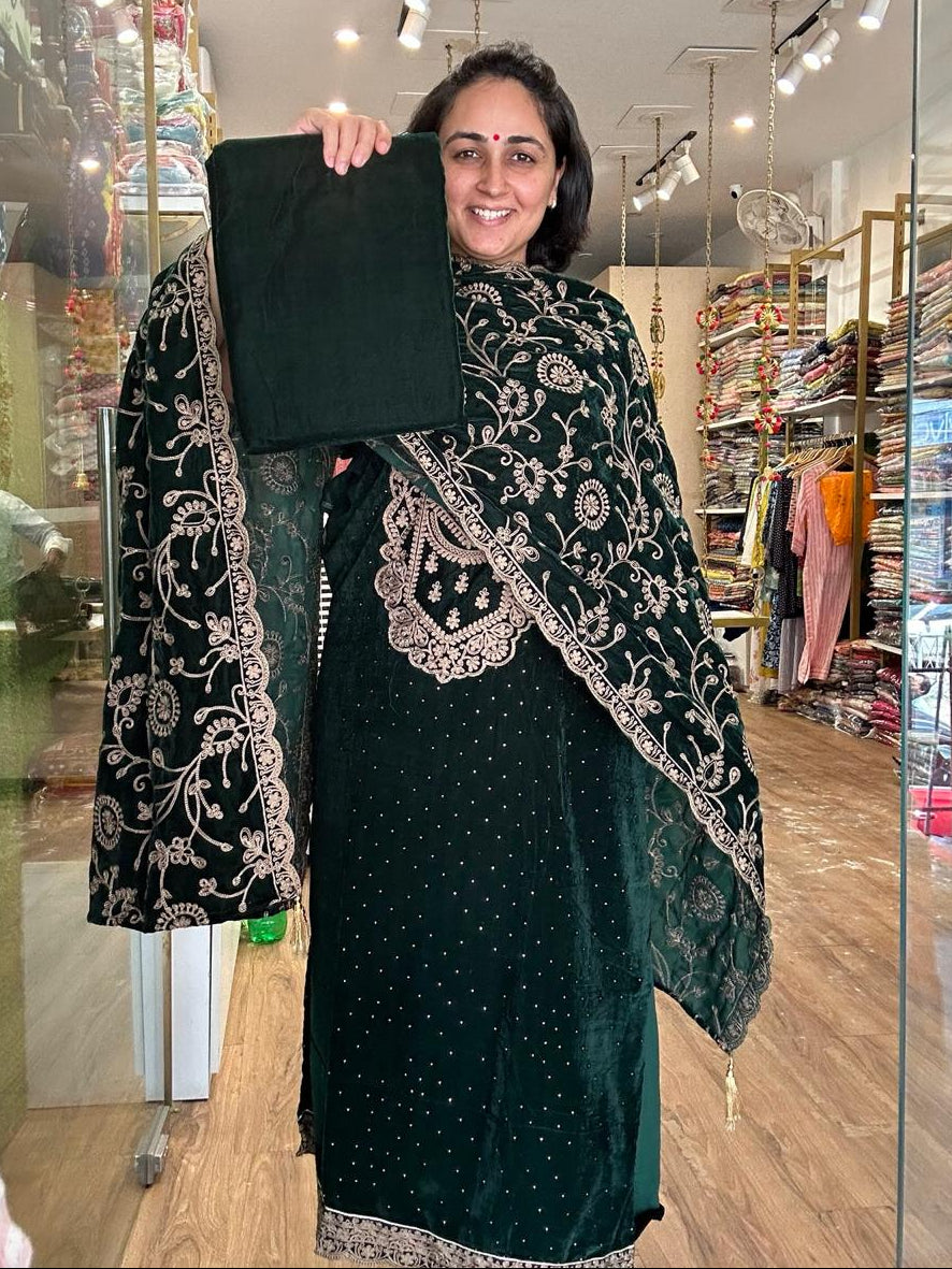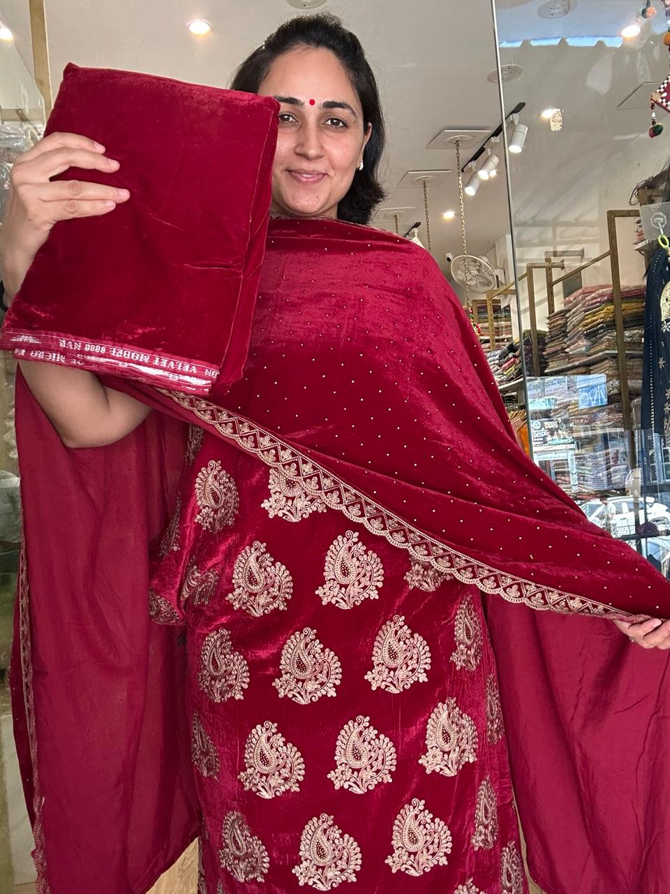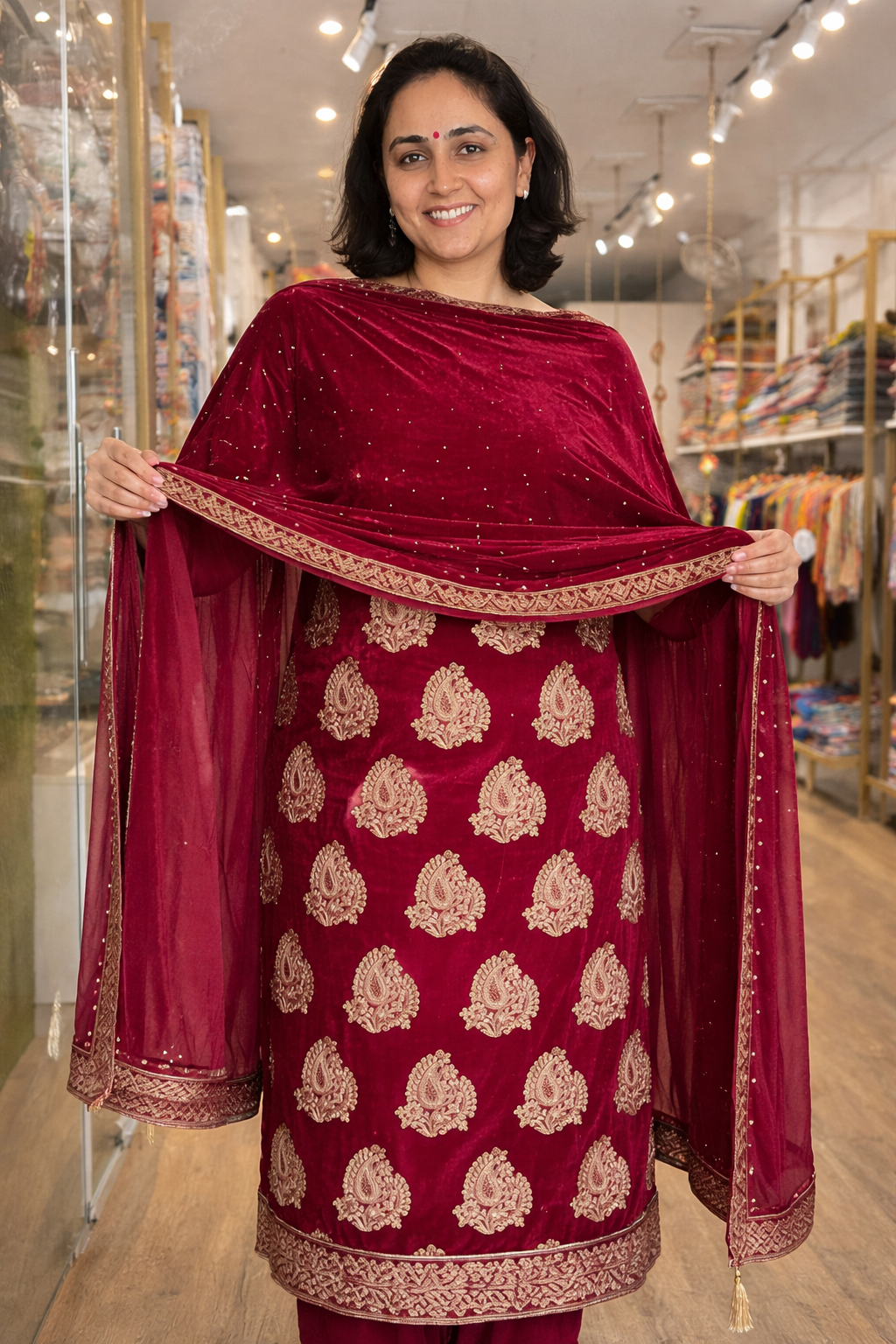 Luxury Velvet Embroidered Suit set with Rhinestone Dupatta