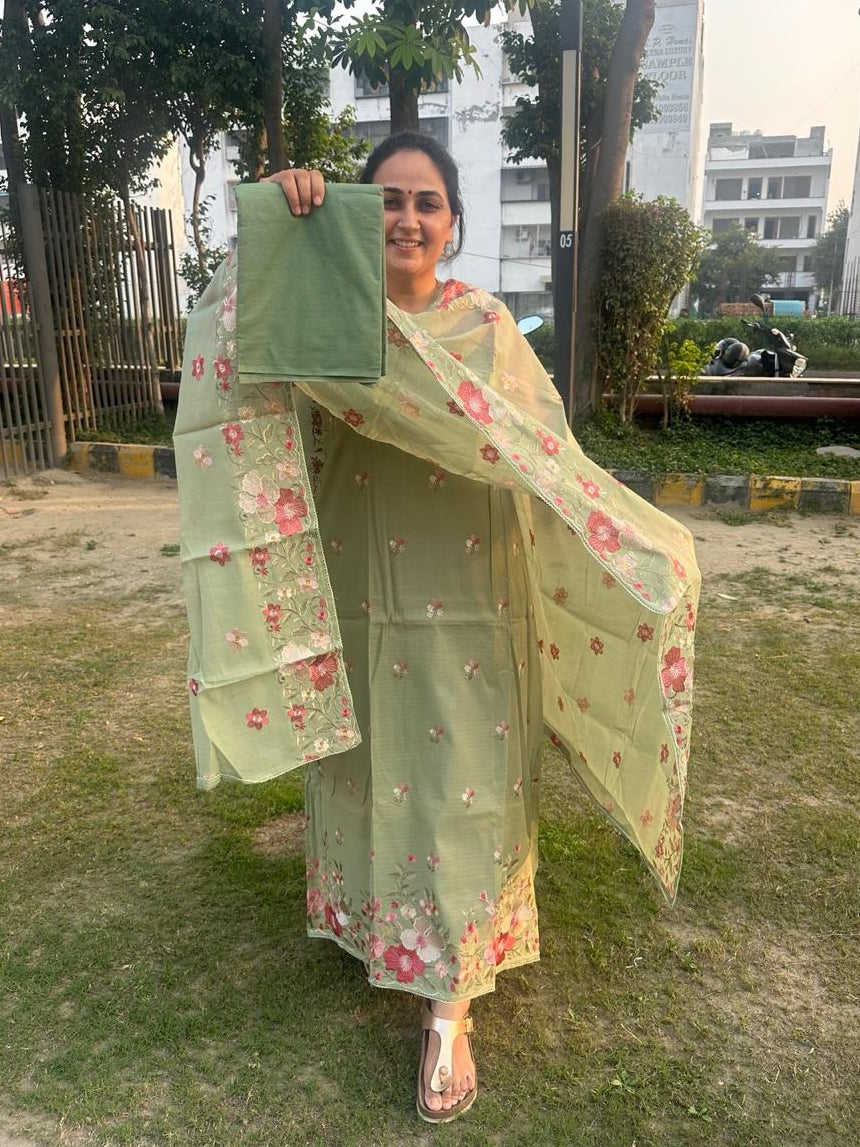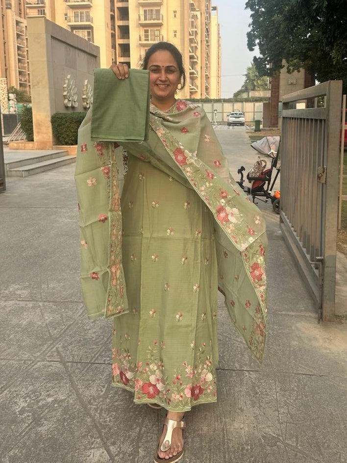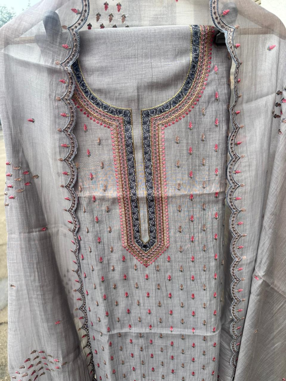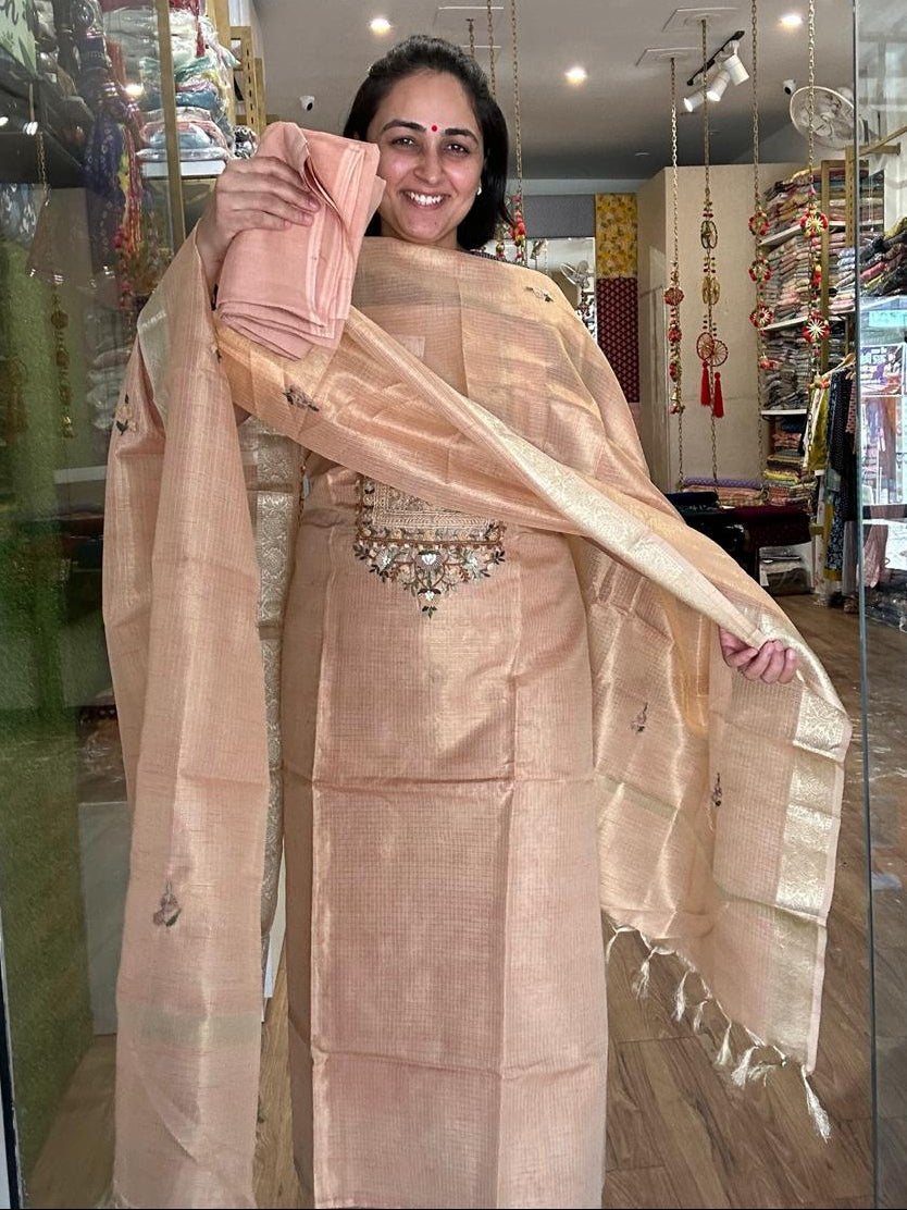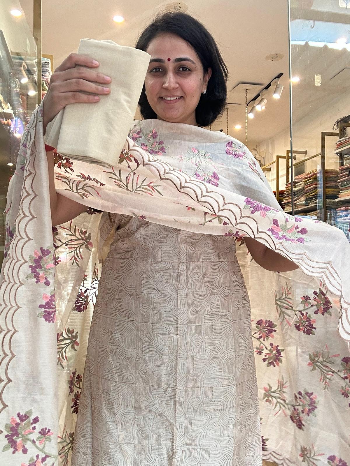 Hand-Embroidered Chanderi Silk Suit Set with Sheer Woven Dupatta