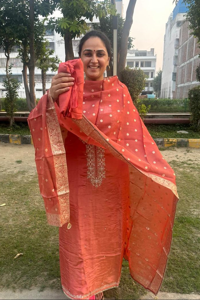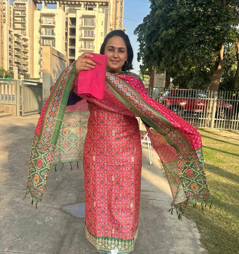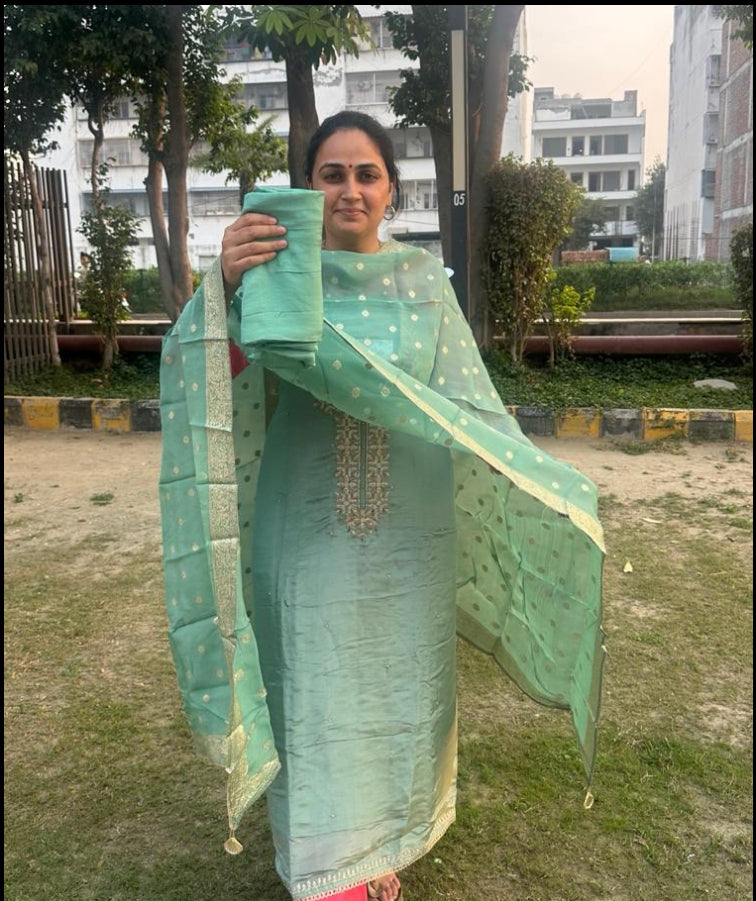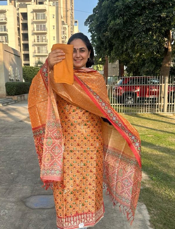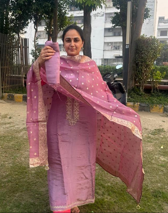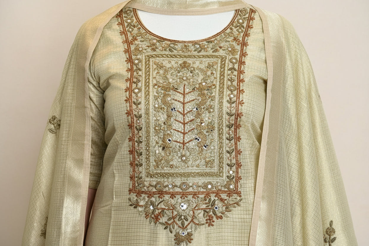 Chanderi Silk Suit Set with Gold Zari & Desinger Dupatta