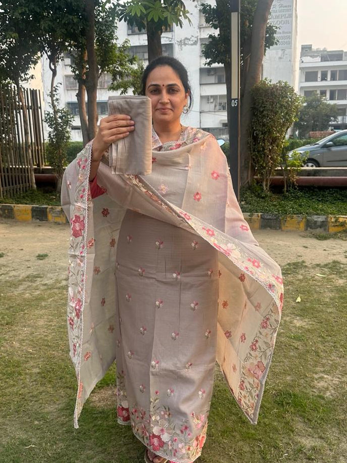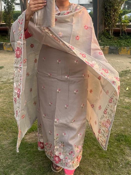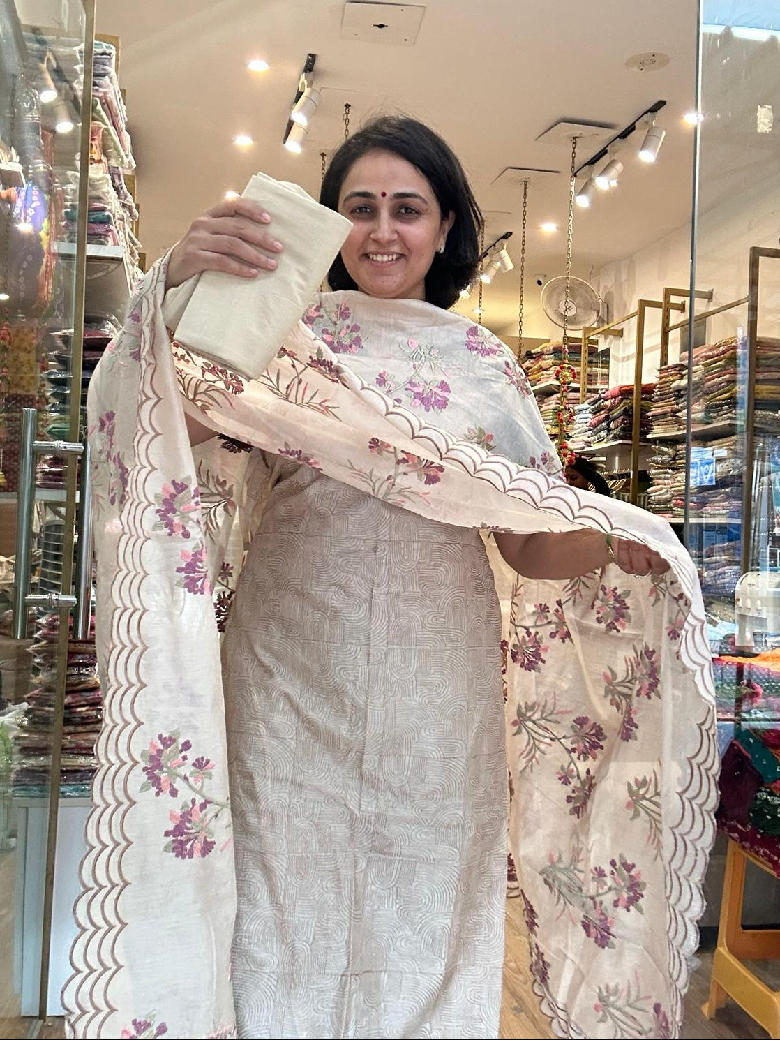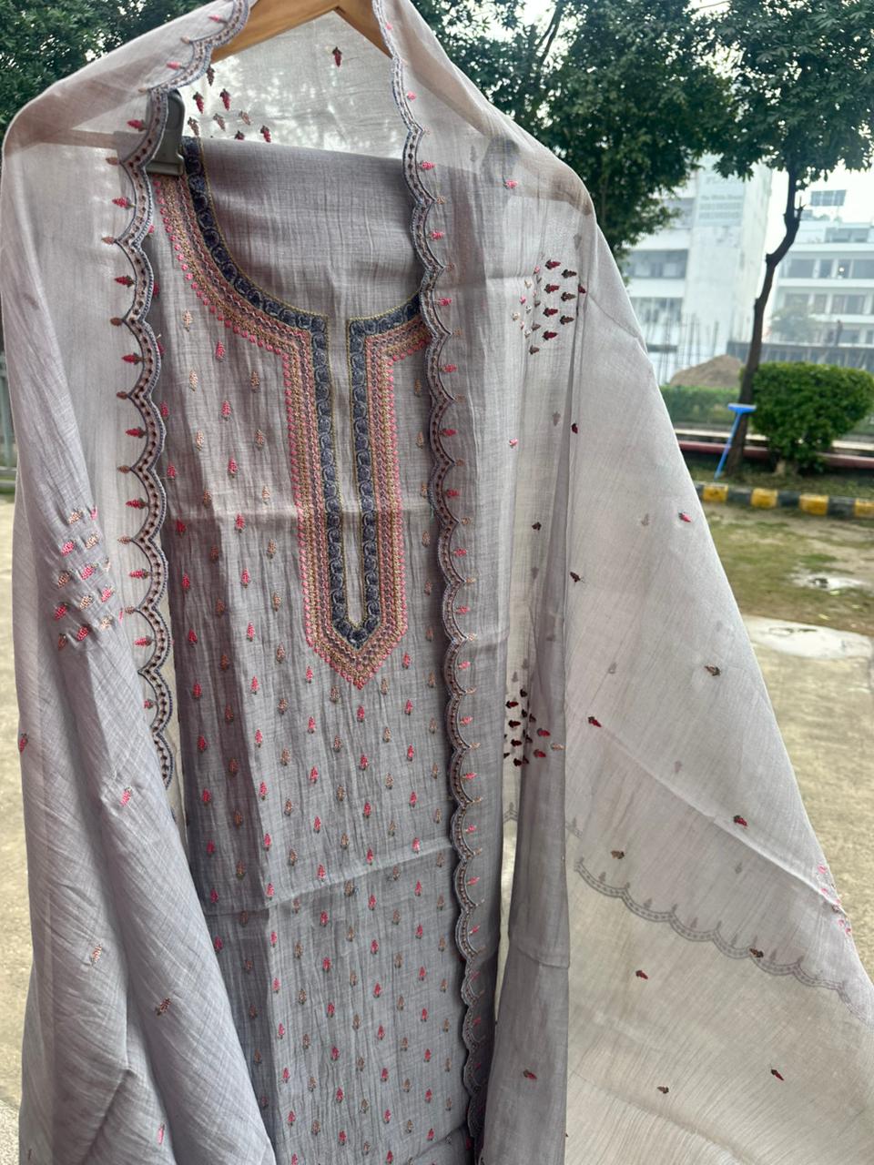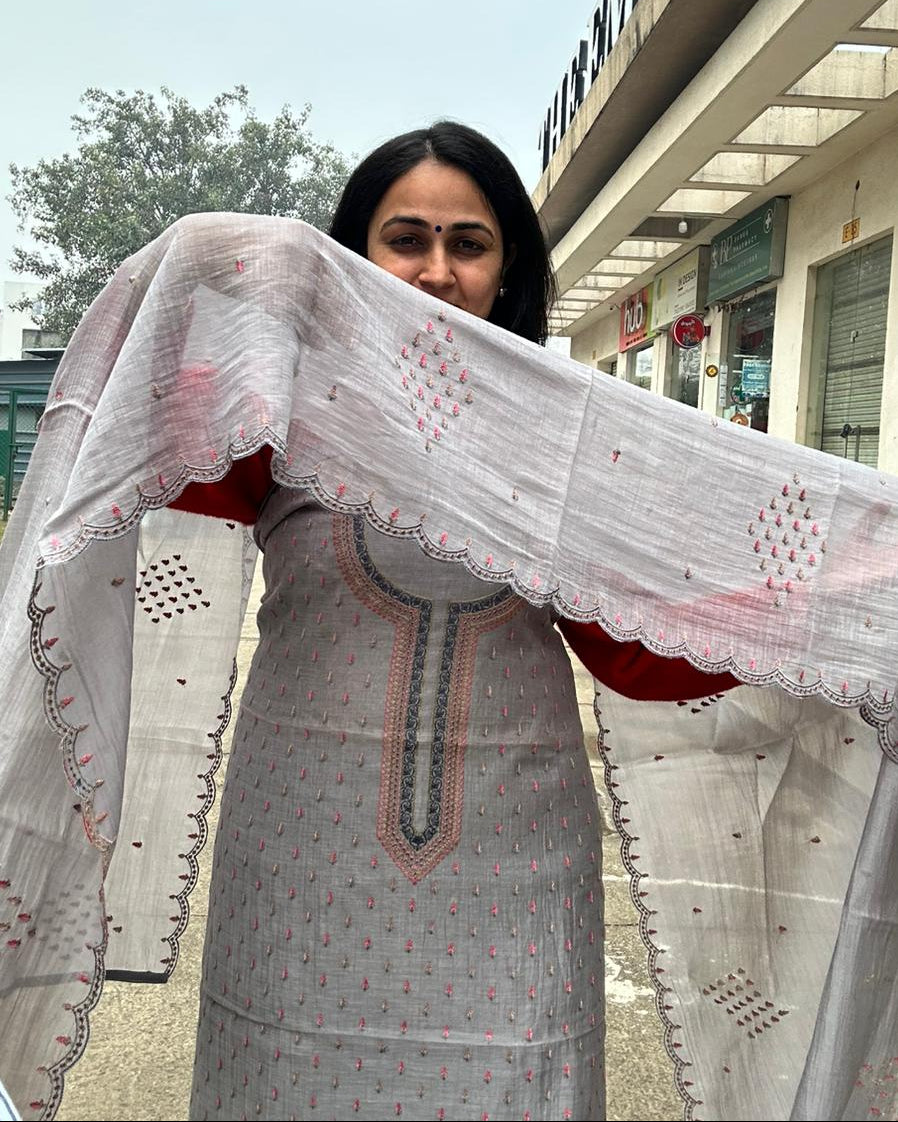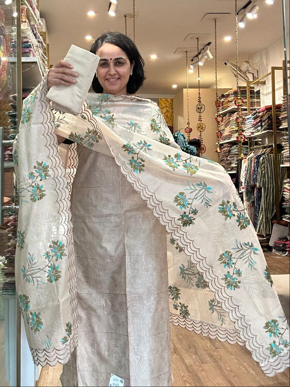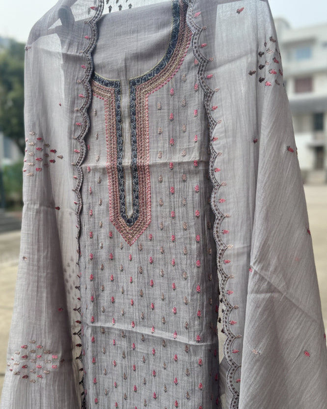 Elegant Linen Suit Set with Subtle Texture & Scalloped Border dupatta