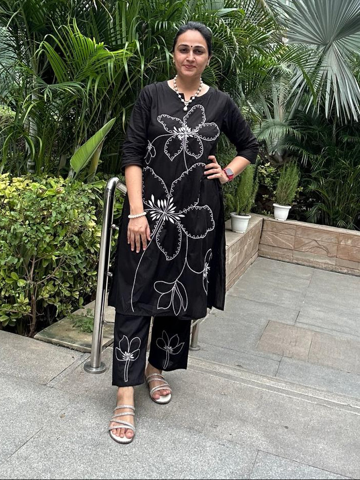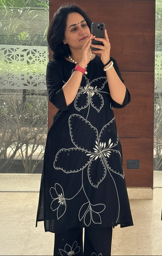 Midnight Bloom Embroidered Co-Ord Set with Statement Floral Motifs