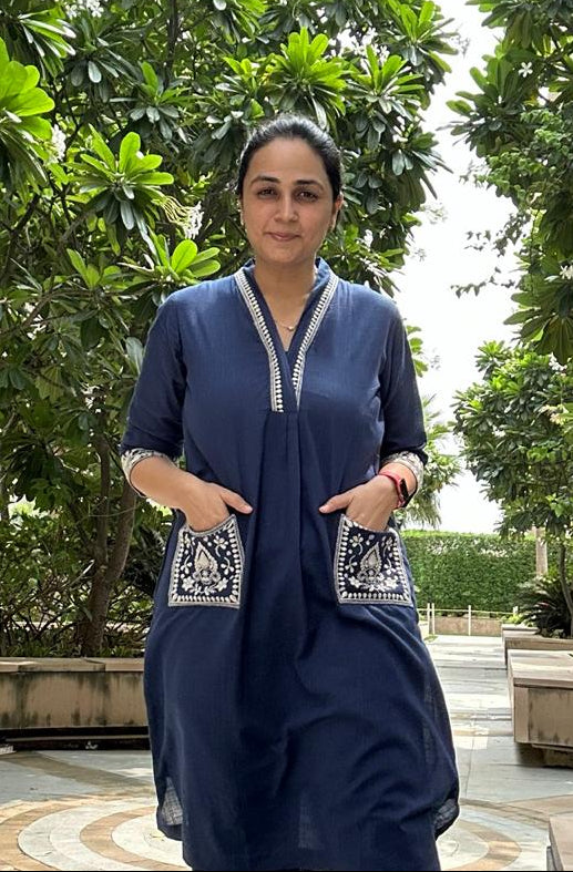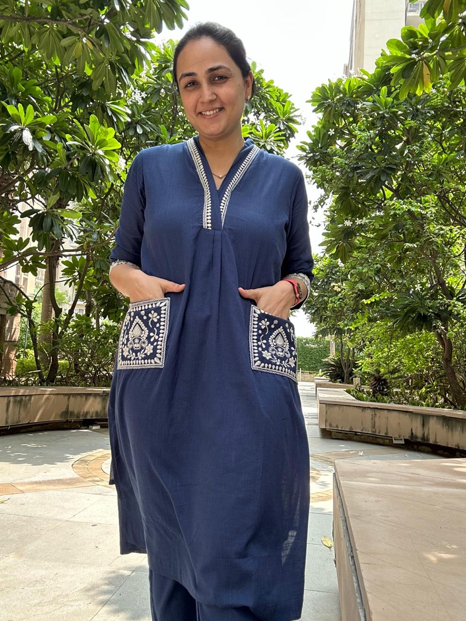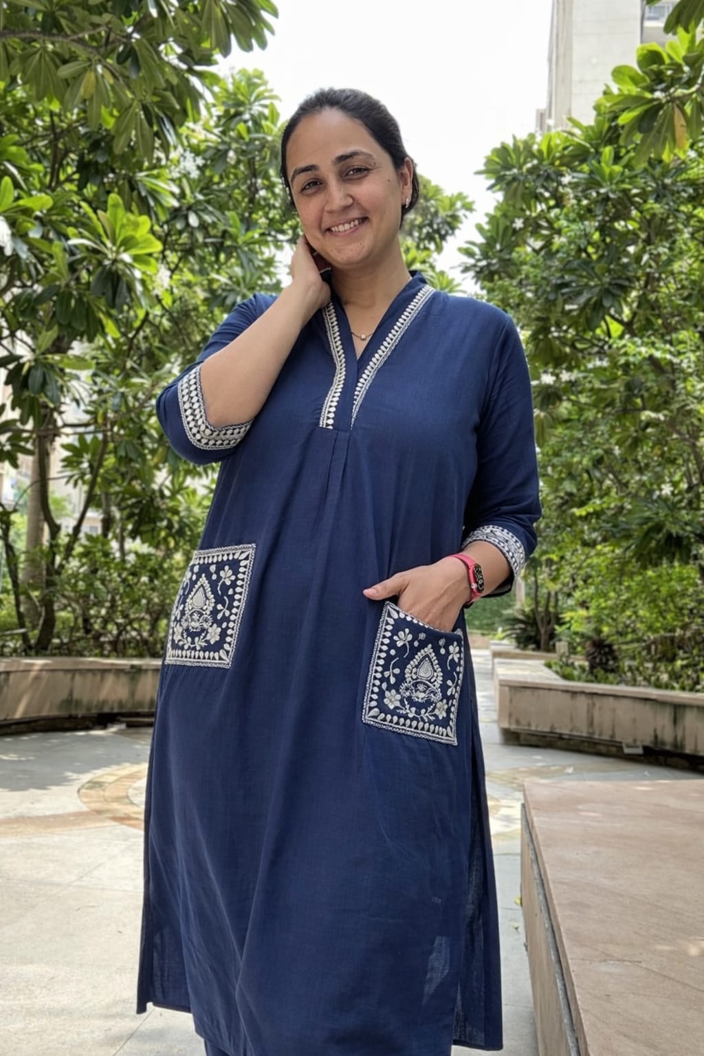 Indigo Grace Cotton Embroidered Co-Ord Set with Pocket Detailing