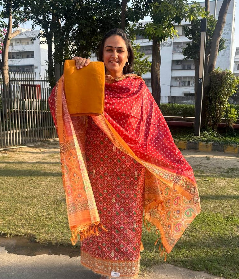 Vibrant Bandhej Cotton Suit Set in Rani Pink & Marigold Yellow
