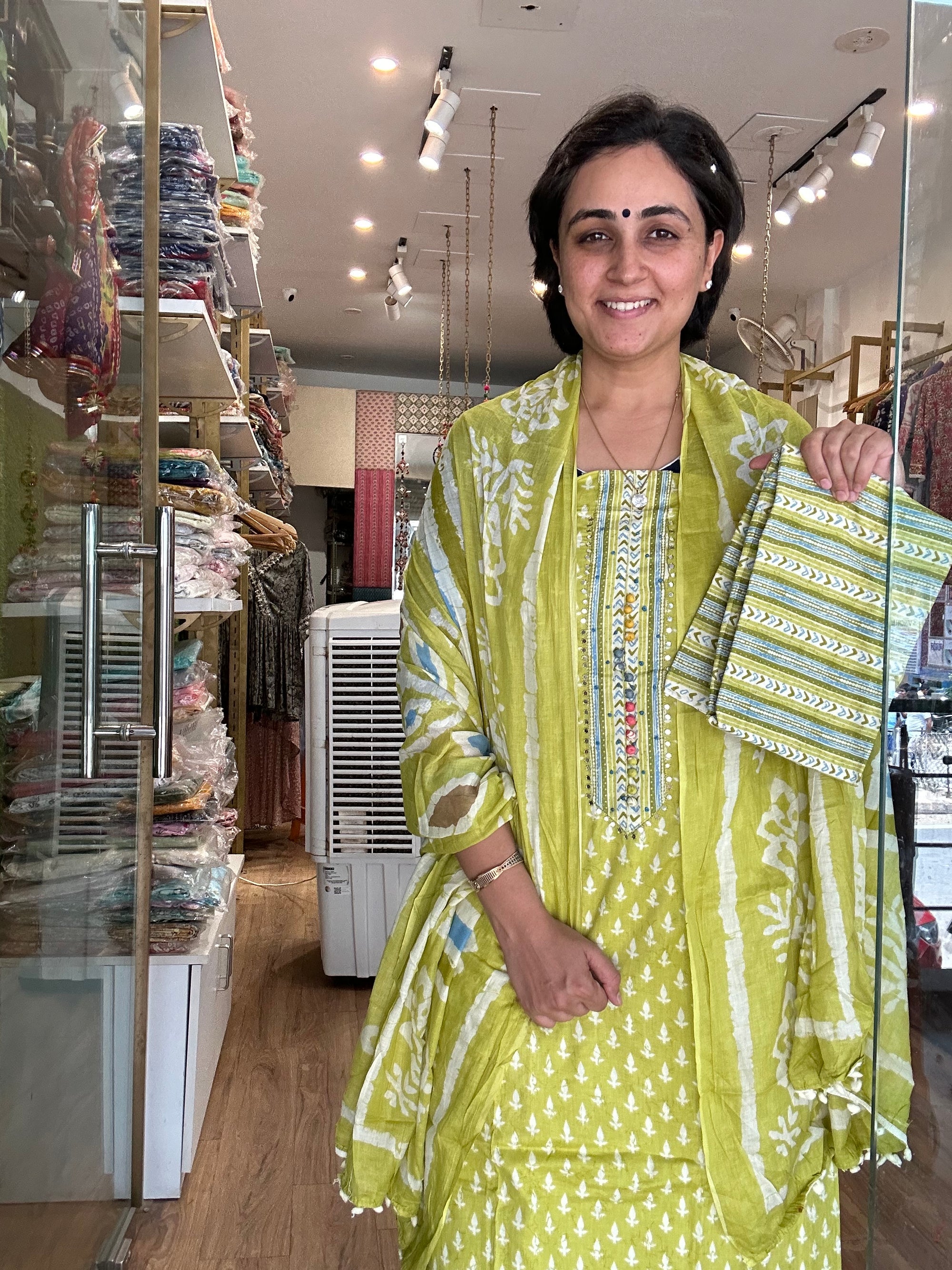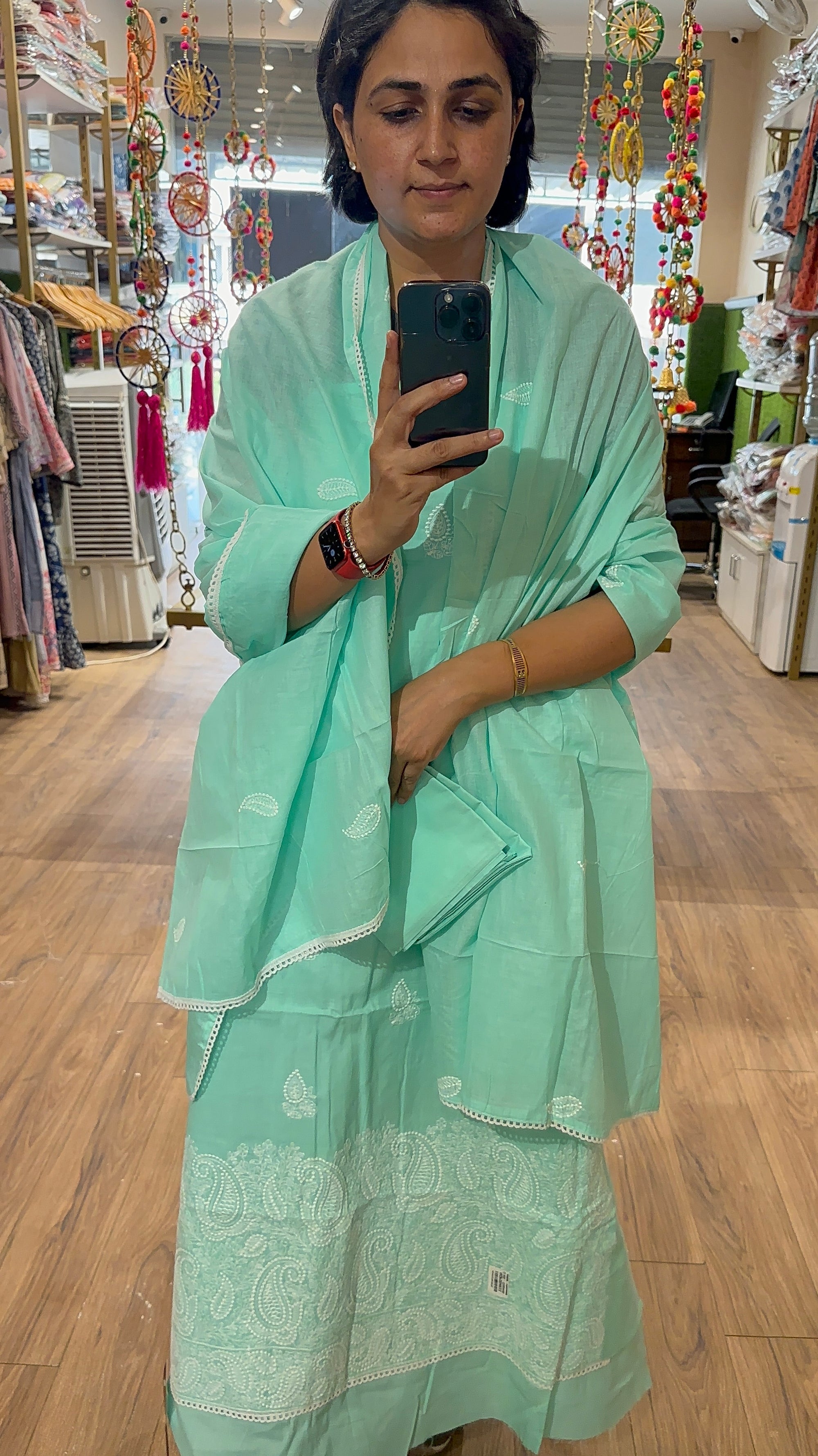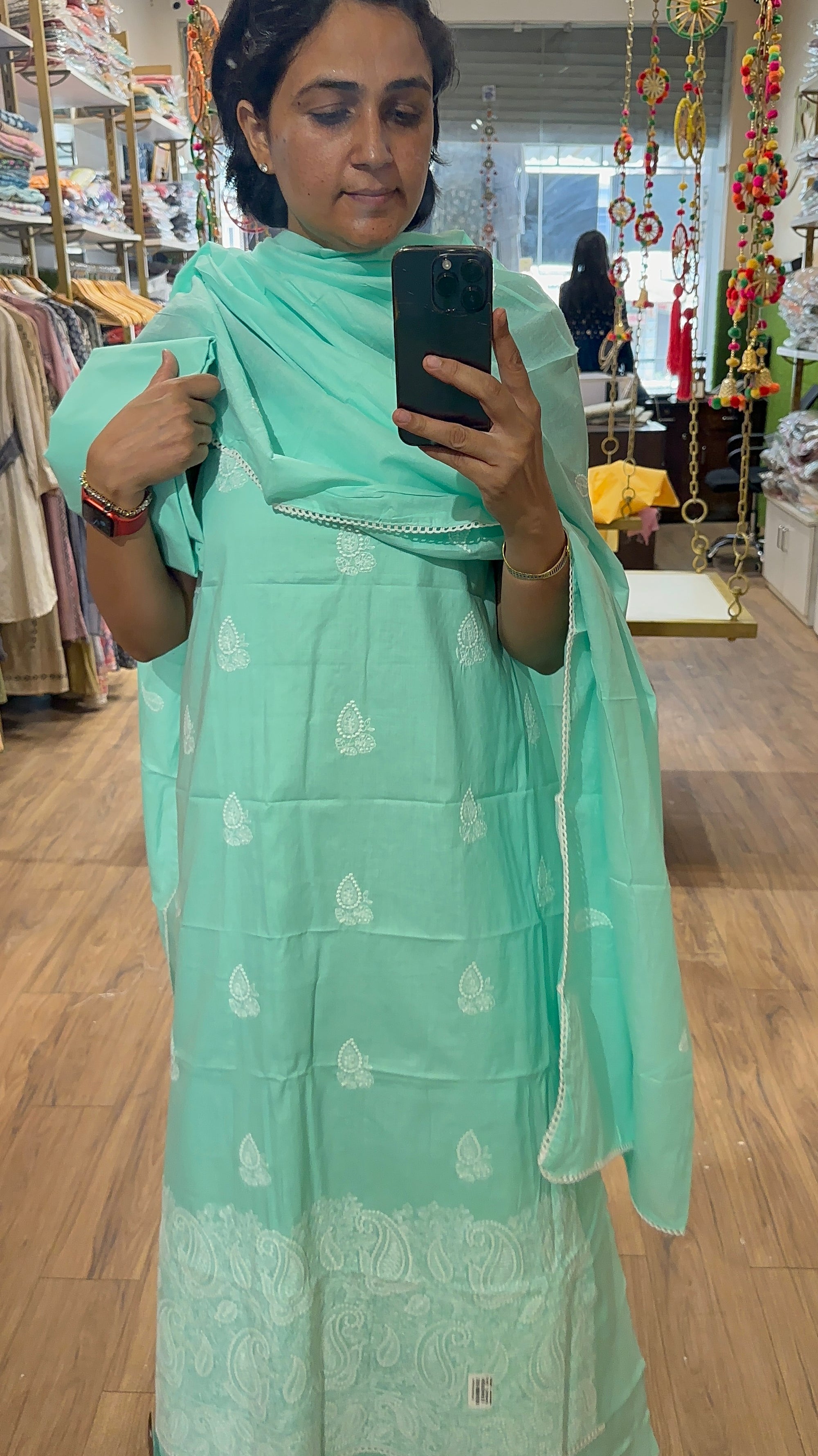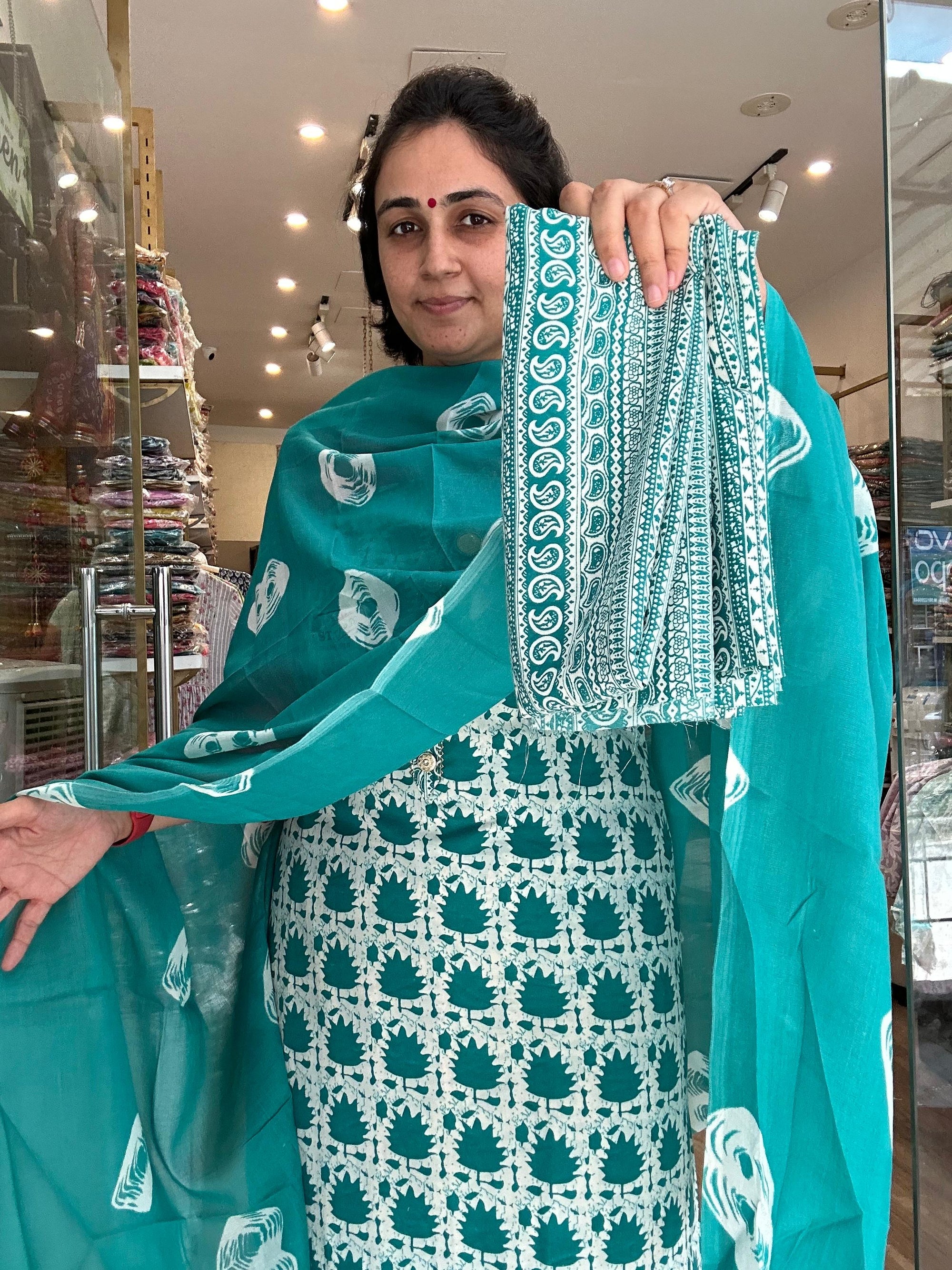Elegant Cotton Printed Suit Set with Lace & Mirror Work – Multiple Shades