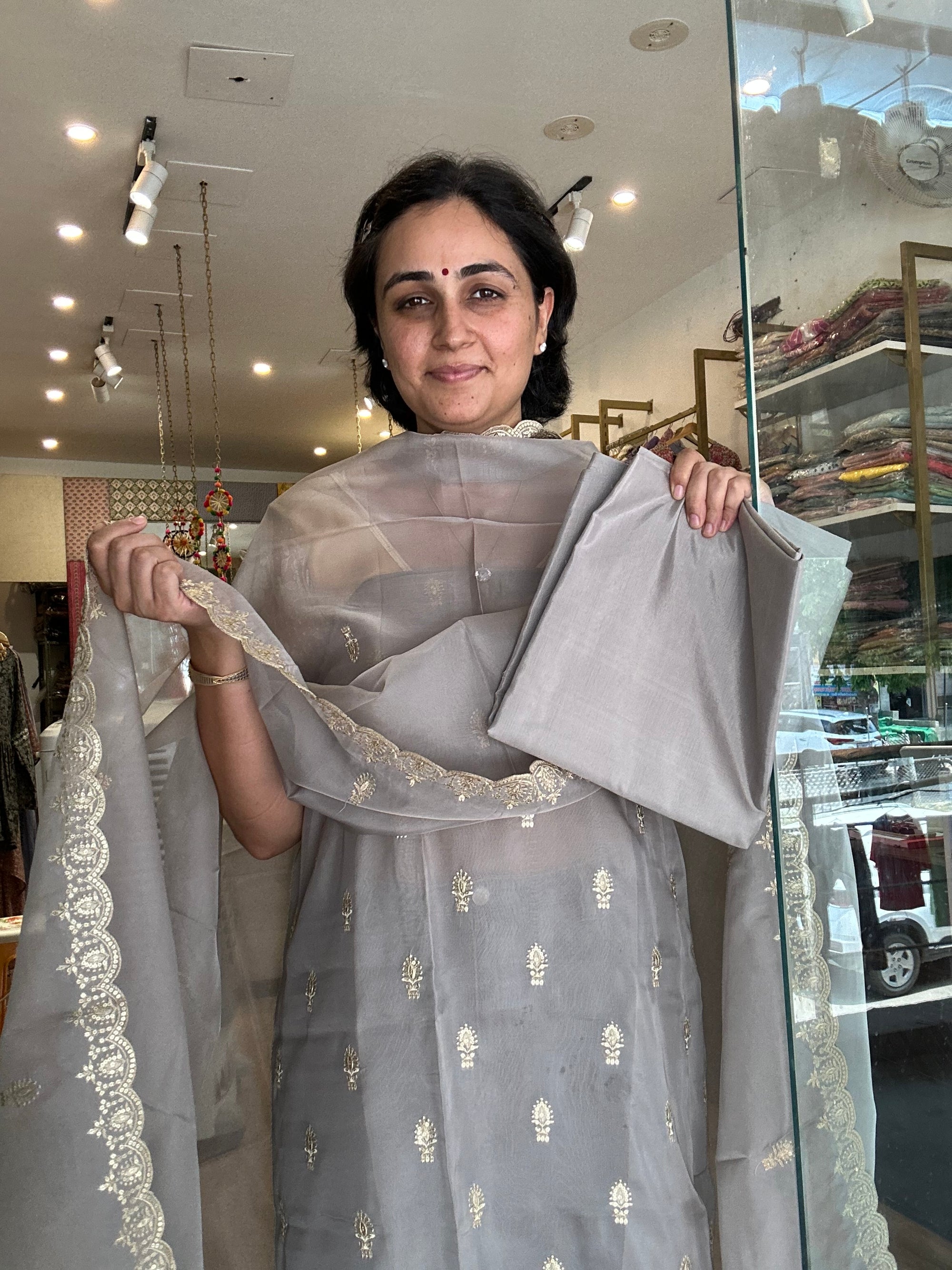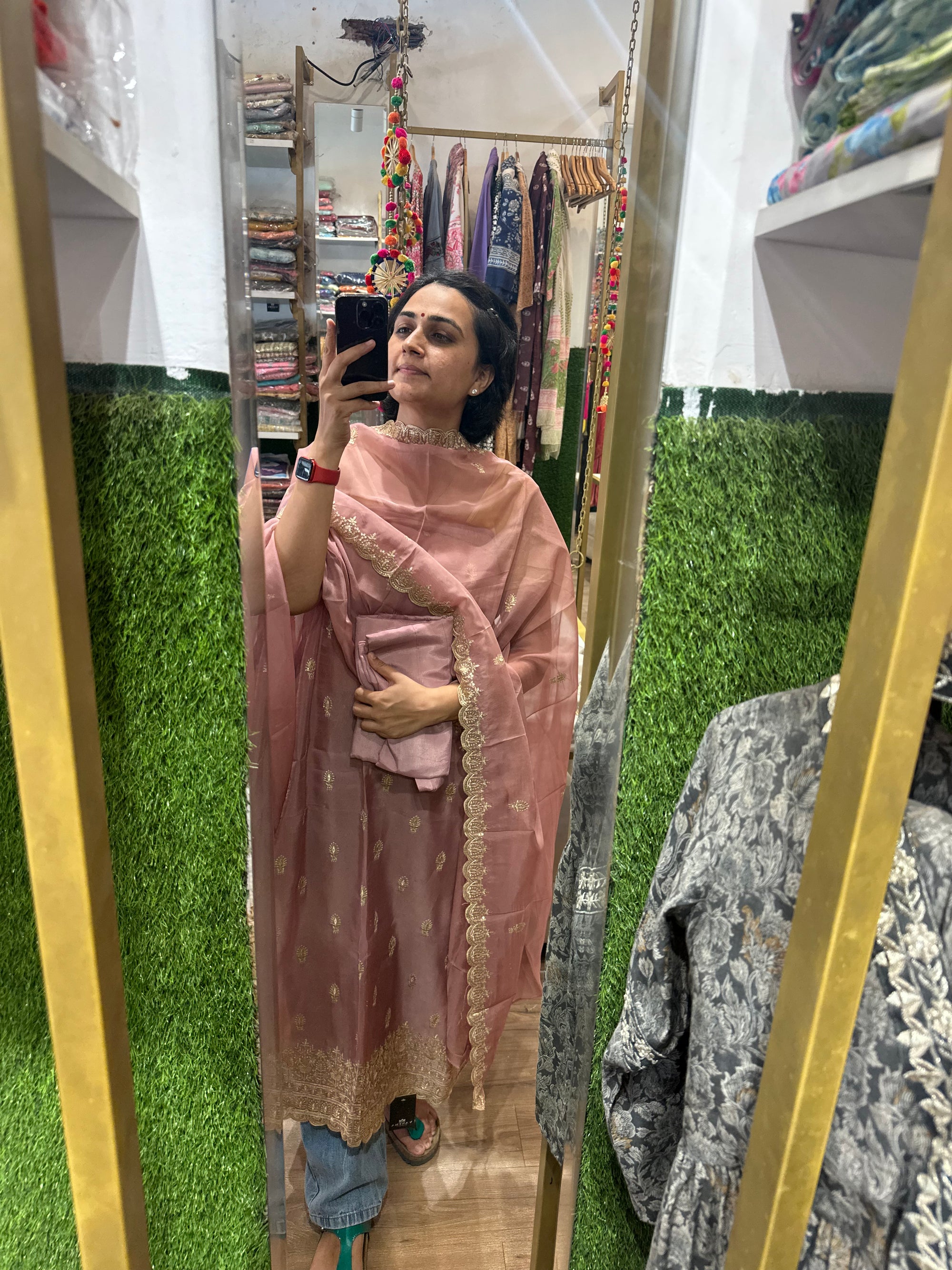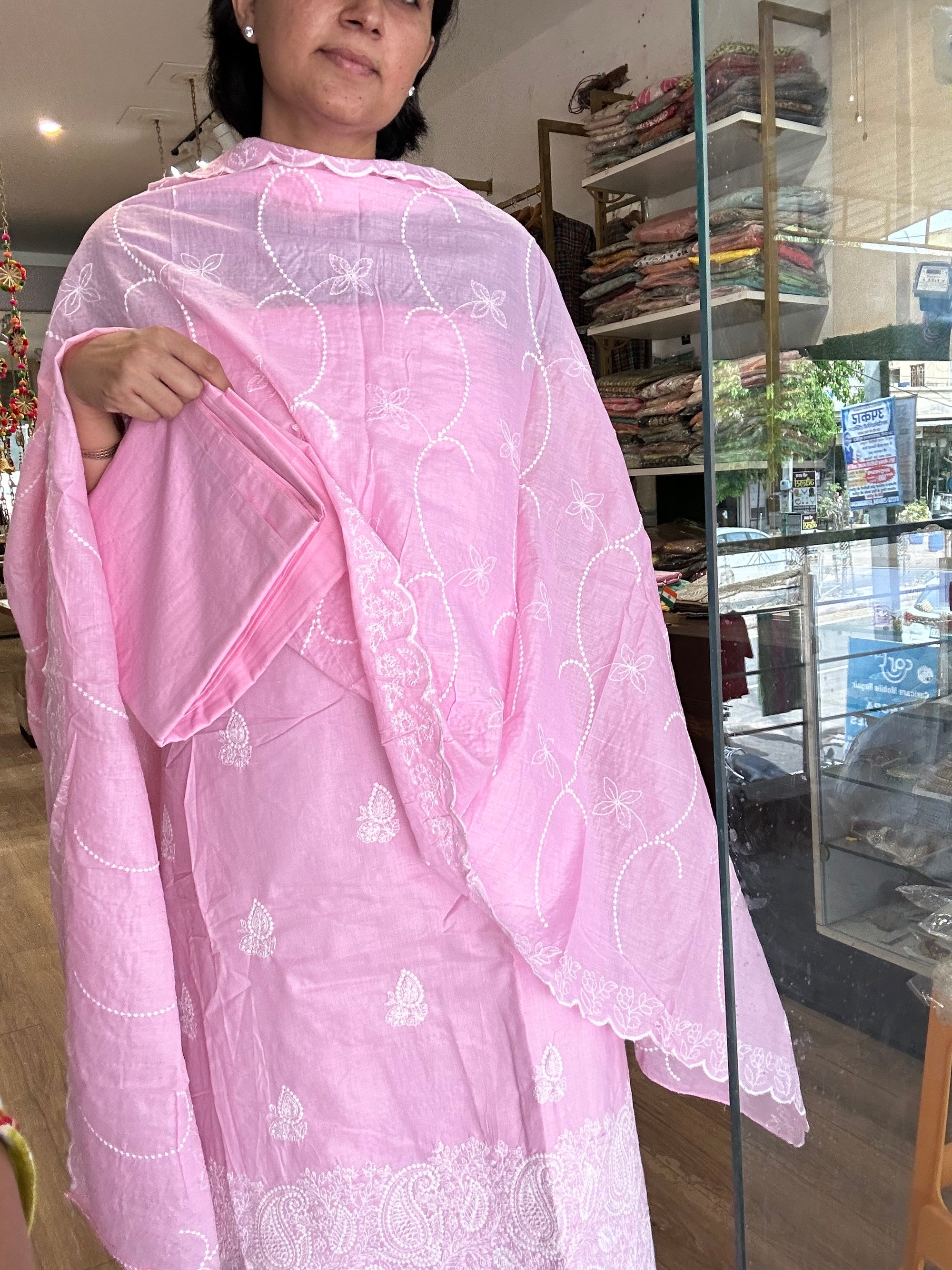 Elegant Floral Embroidered Suit Set in Pastel Shades
