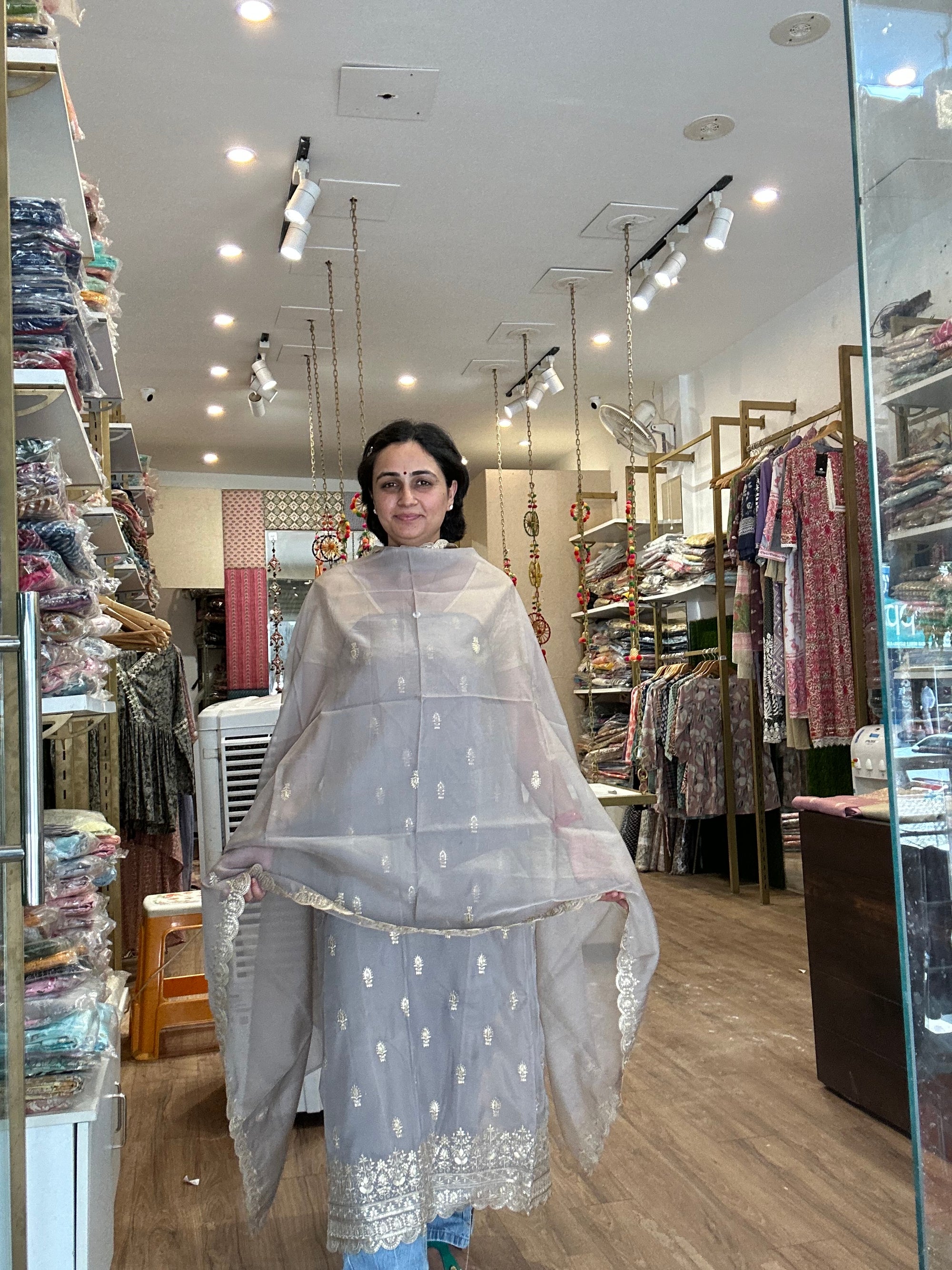 Elegant Grey Floral Print Kurta Set with Dupatta