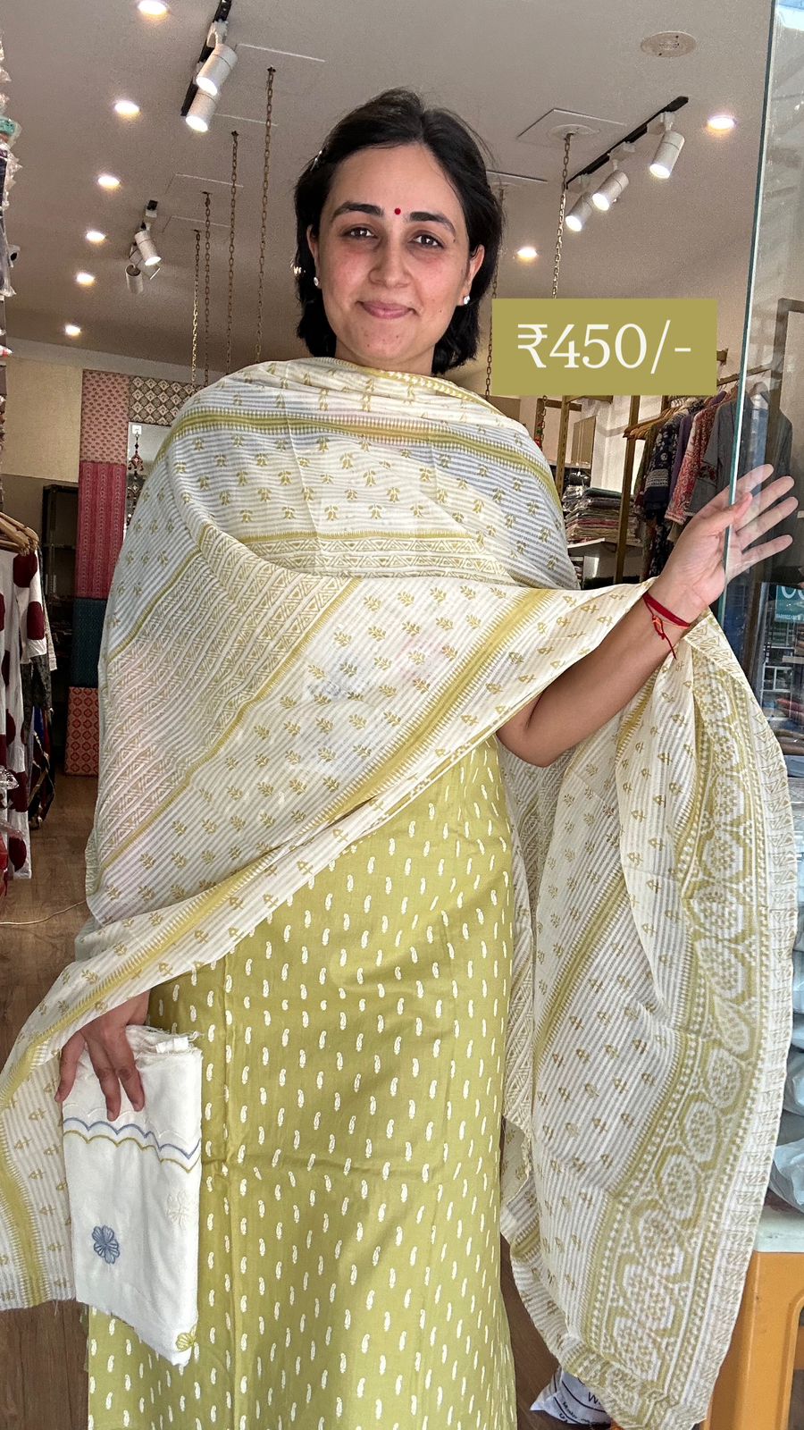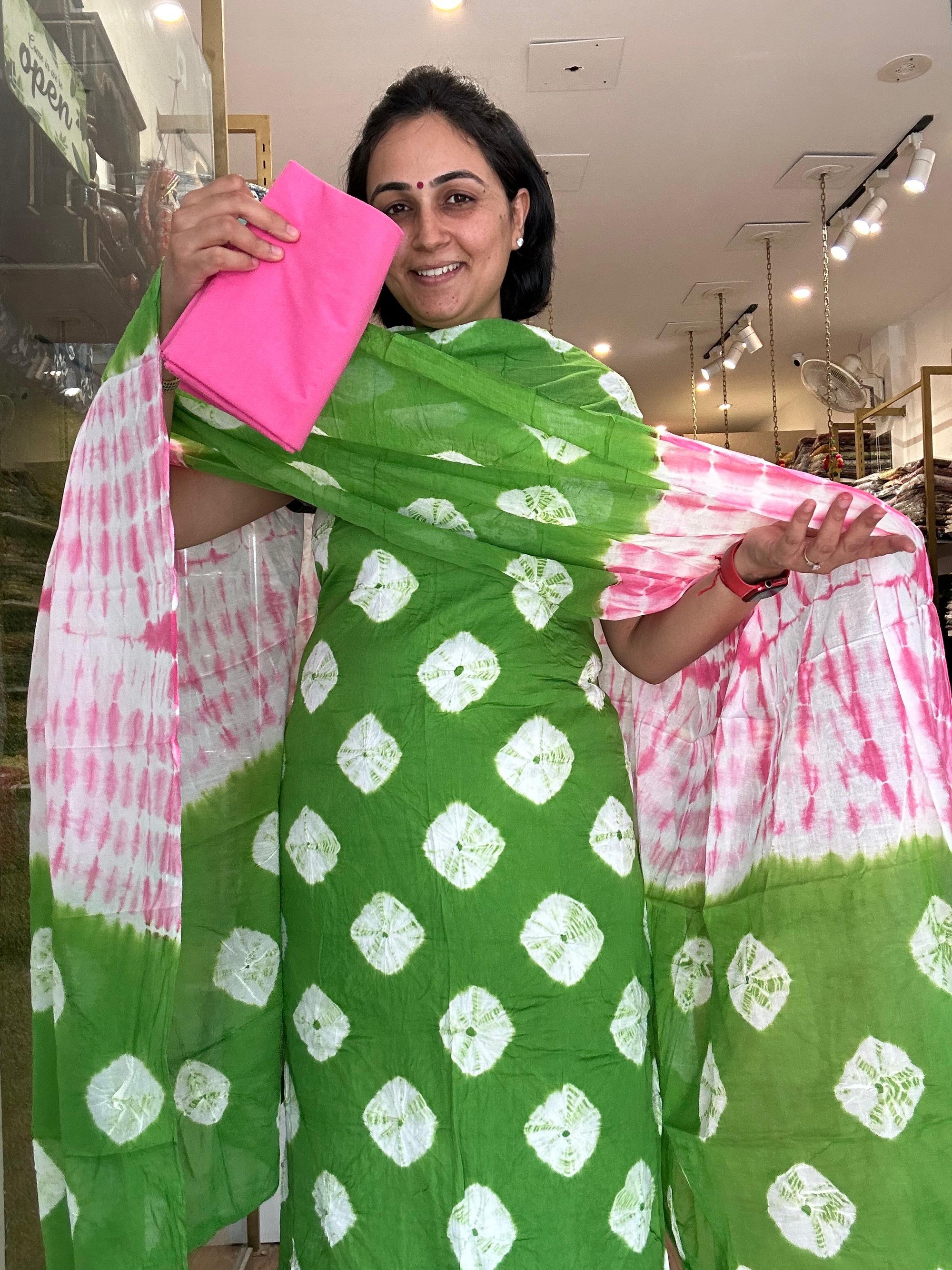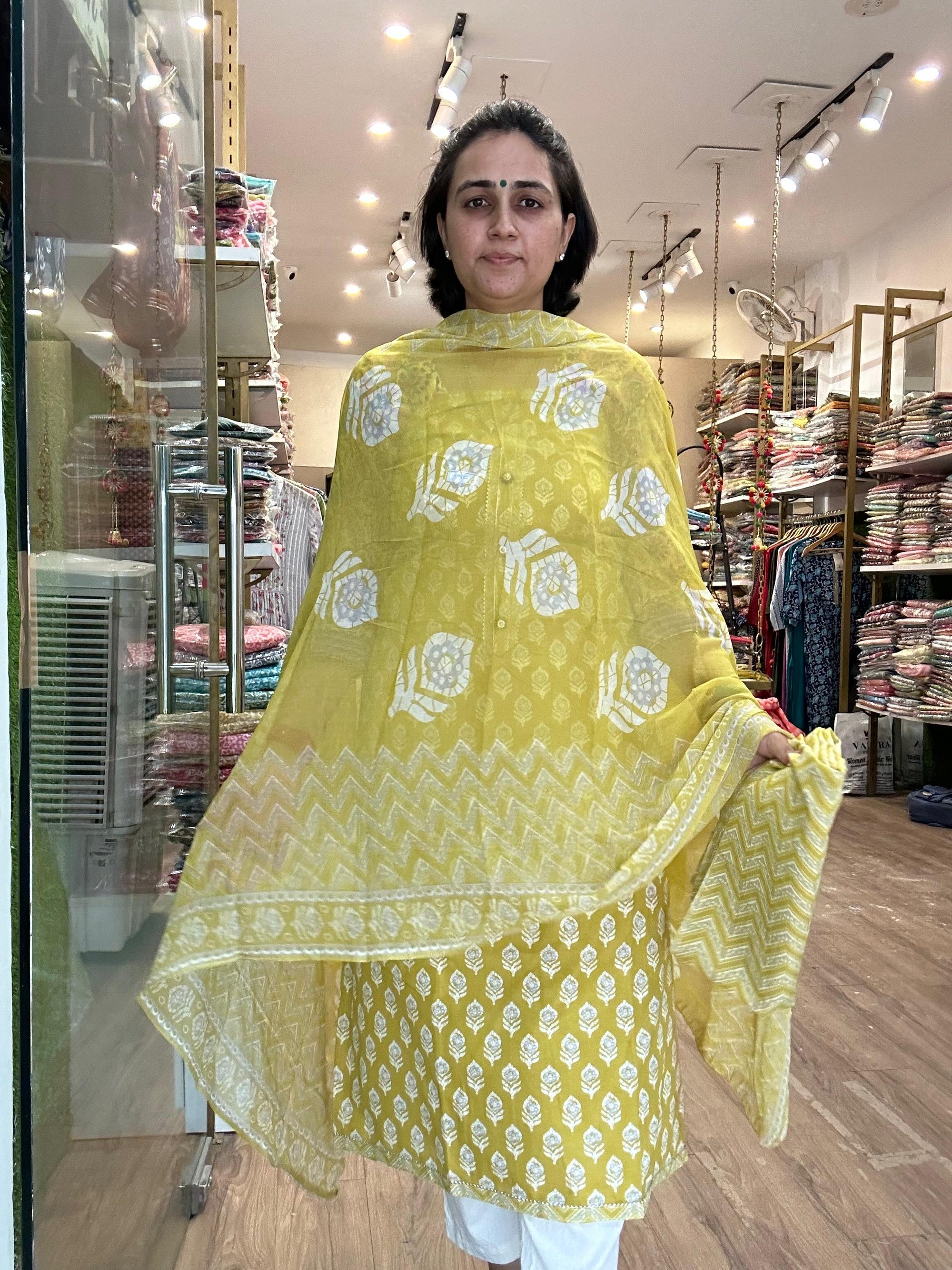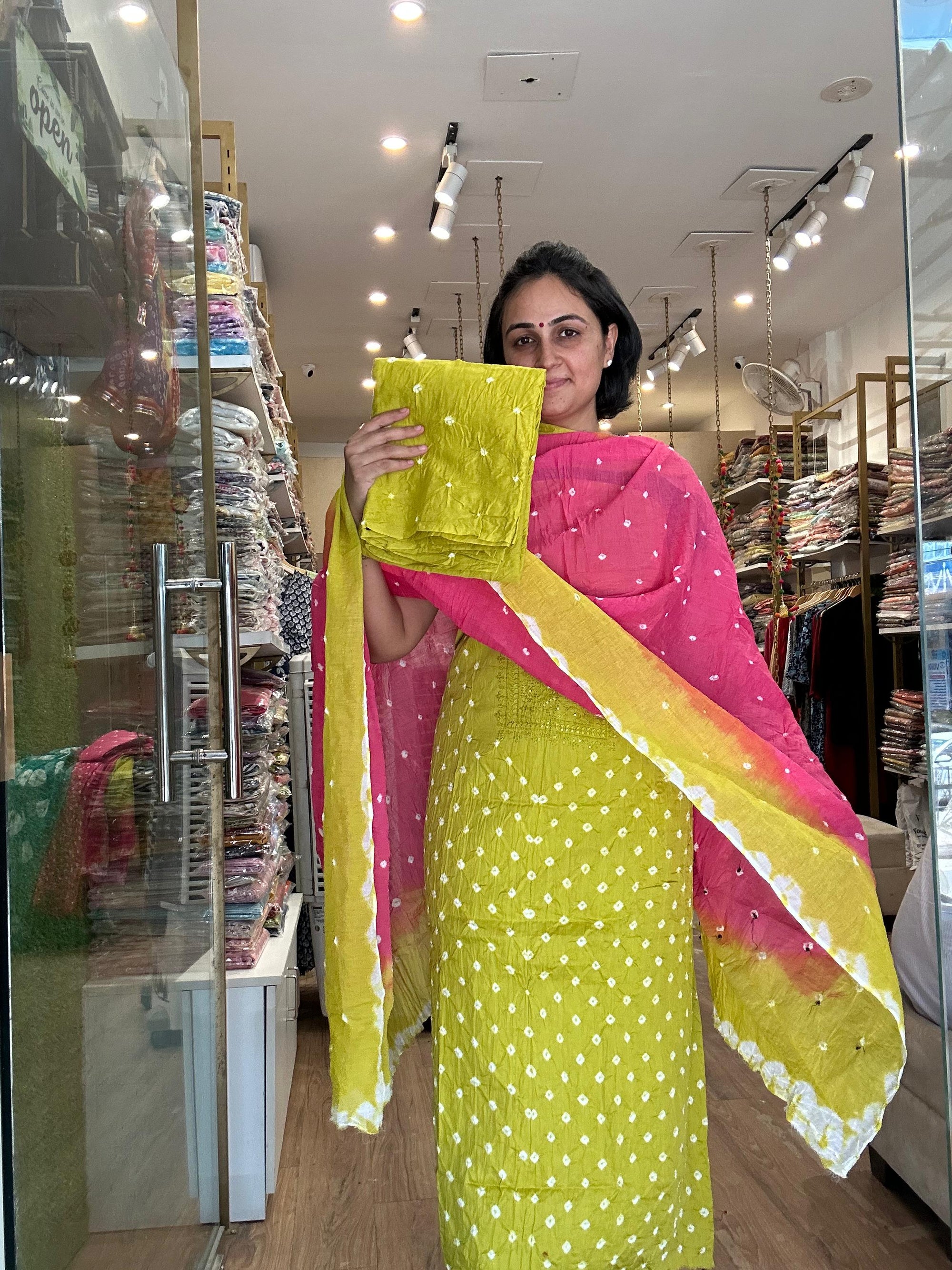 Vastrabymonty Traditional Block Print Pure Cotton Unstitched 3-Piece Suit Set with Embroidered Dupatta – Pink, Yellow, Turquoise, Light Blue – Rs. 450 Only