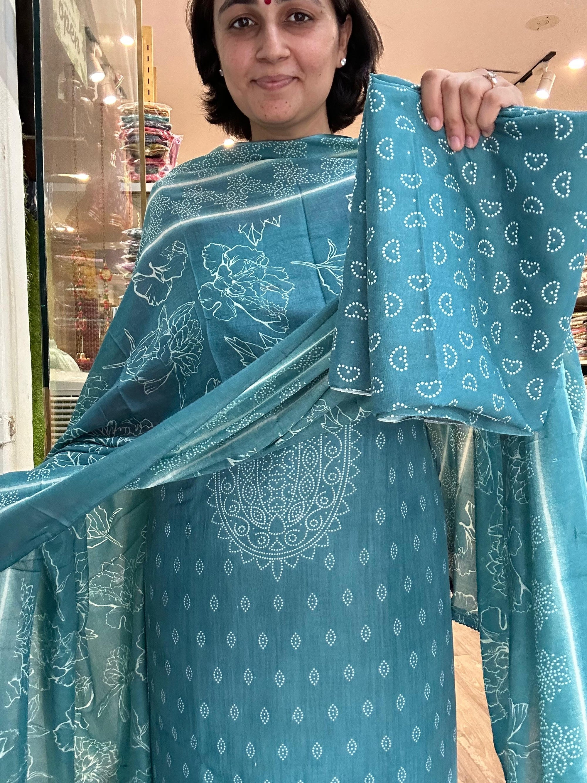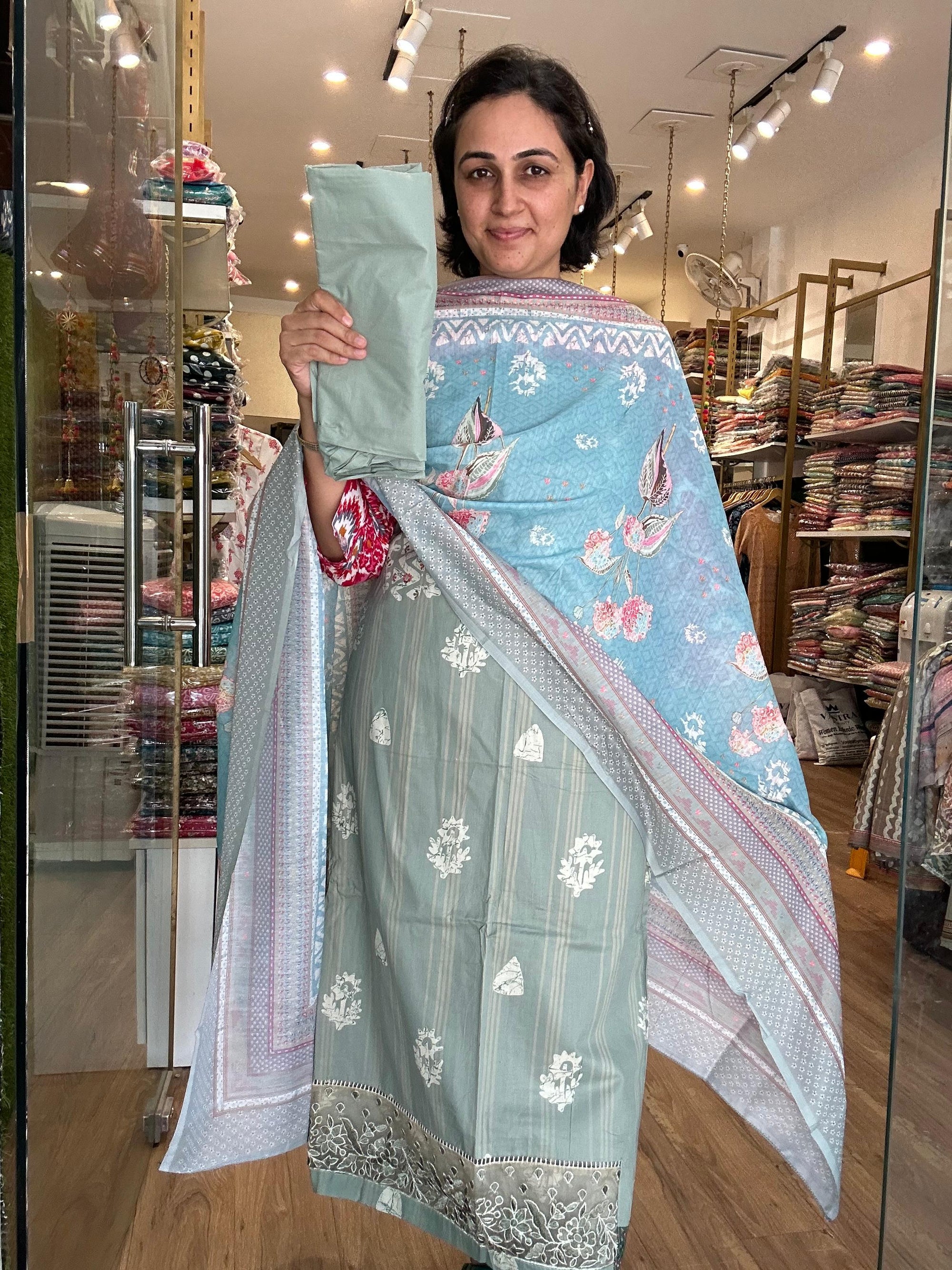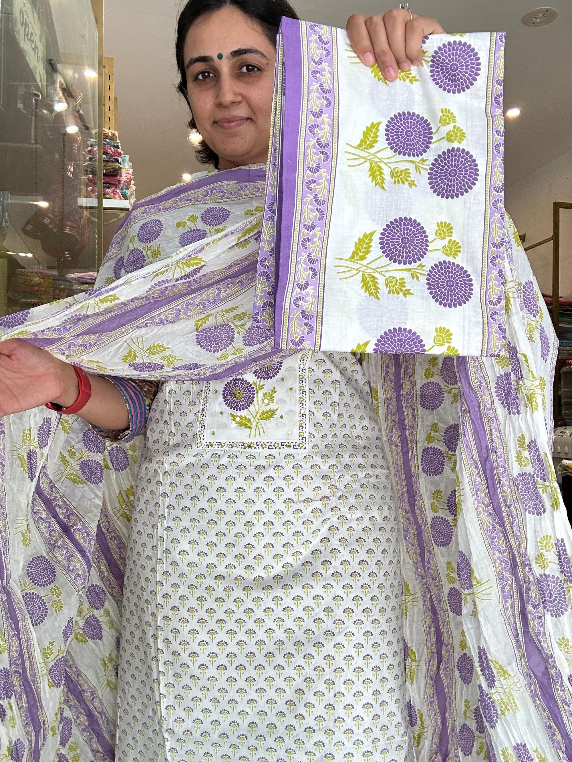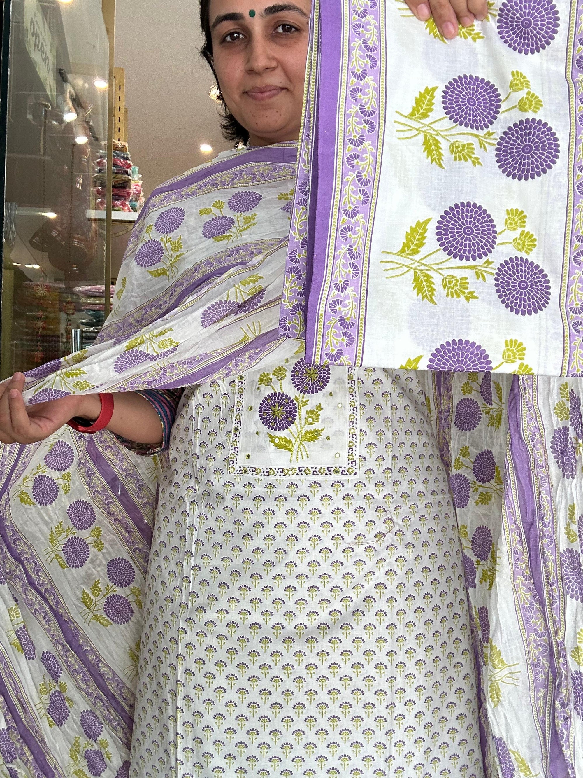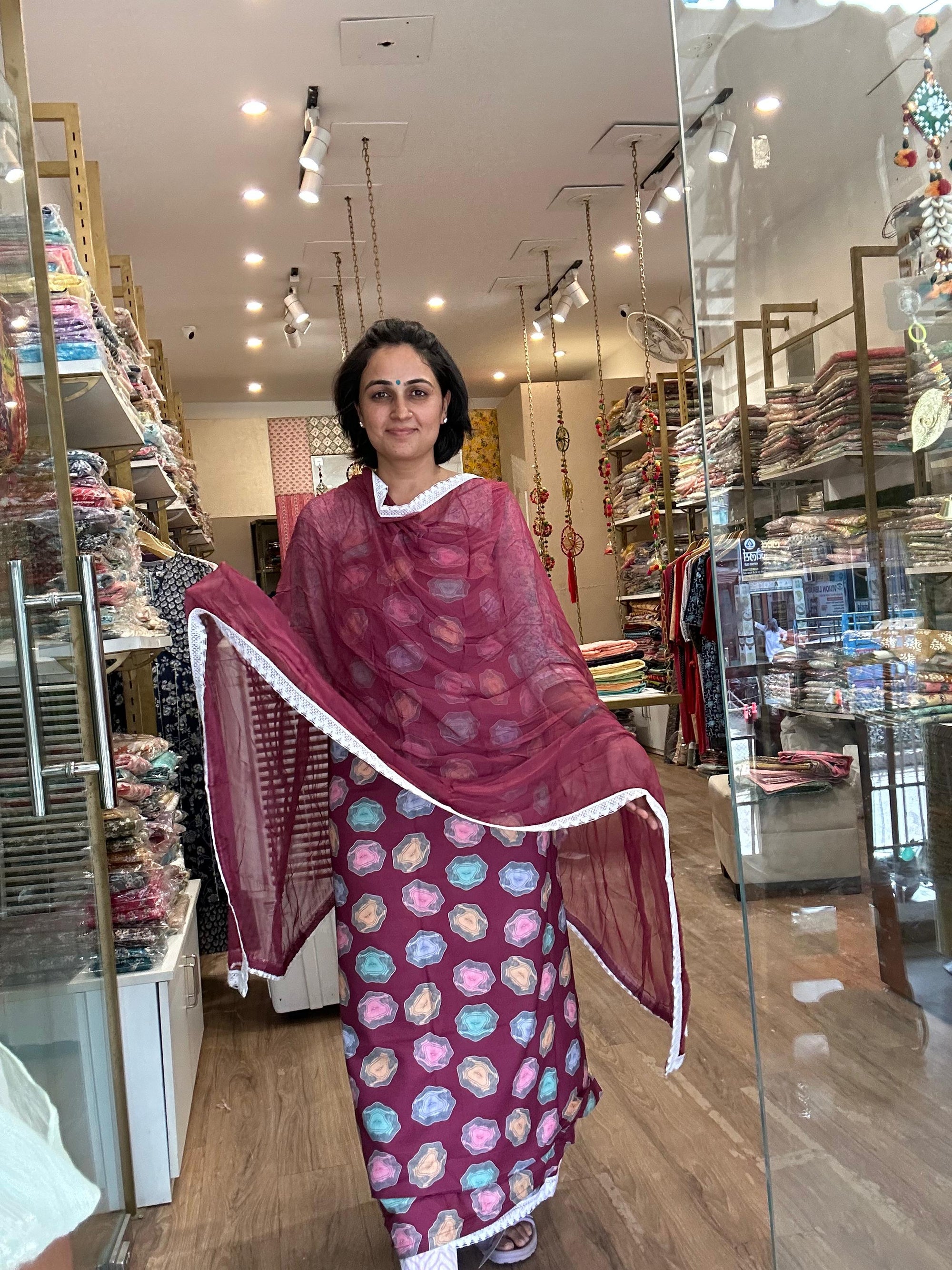 Elegant Cotton Printed Suit Set with Lace & Mirror Work – Multiple Shades