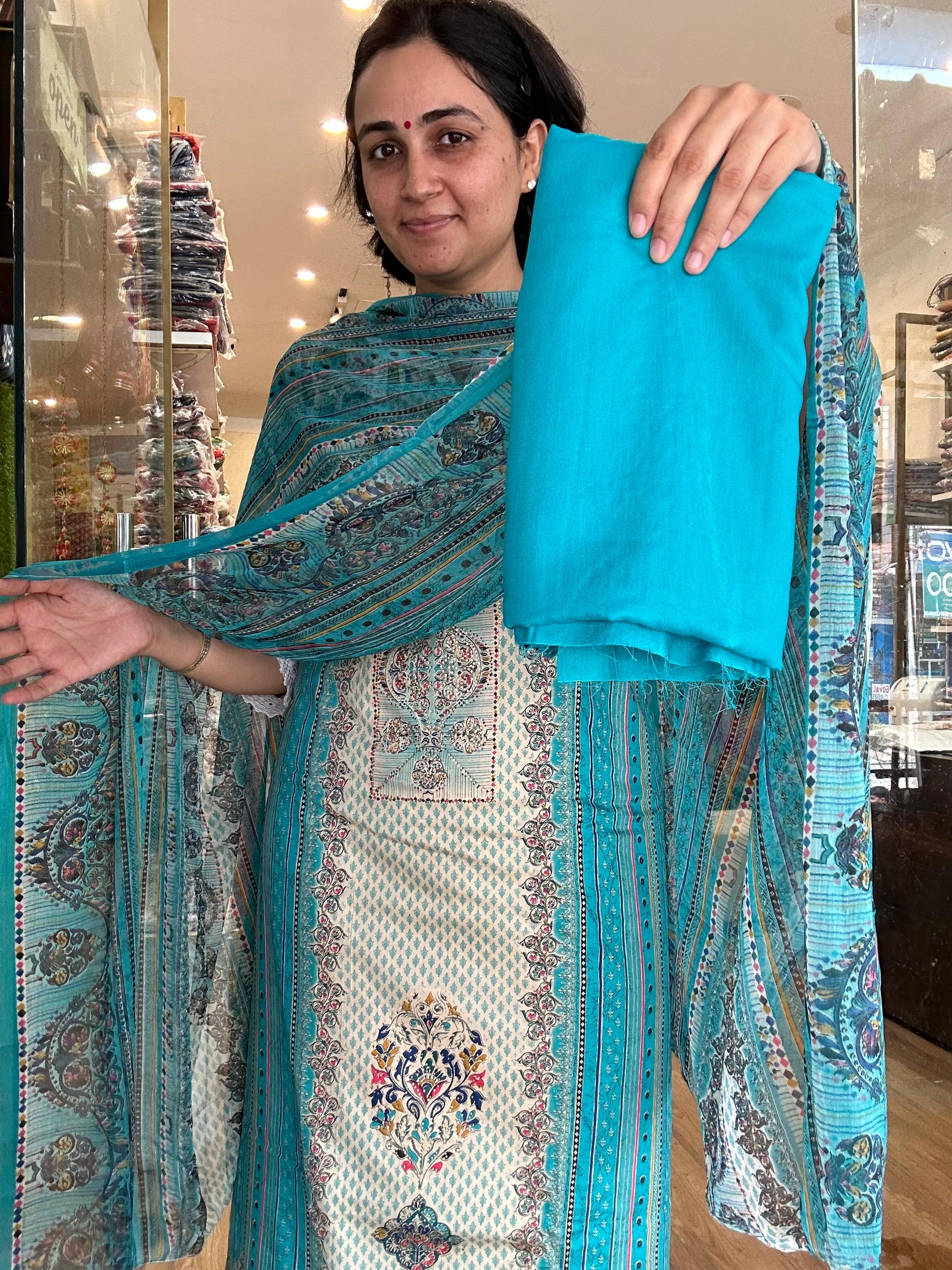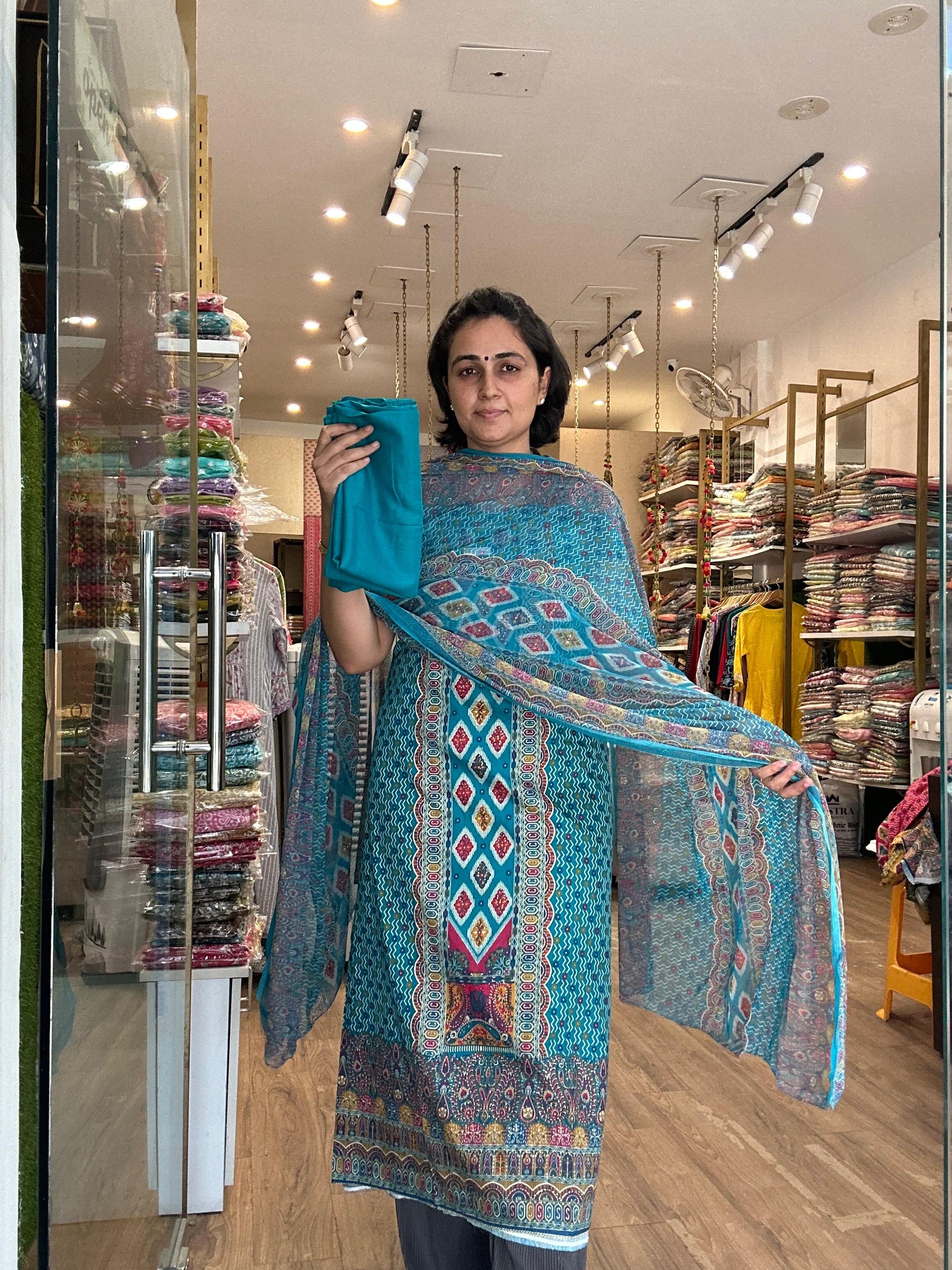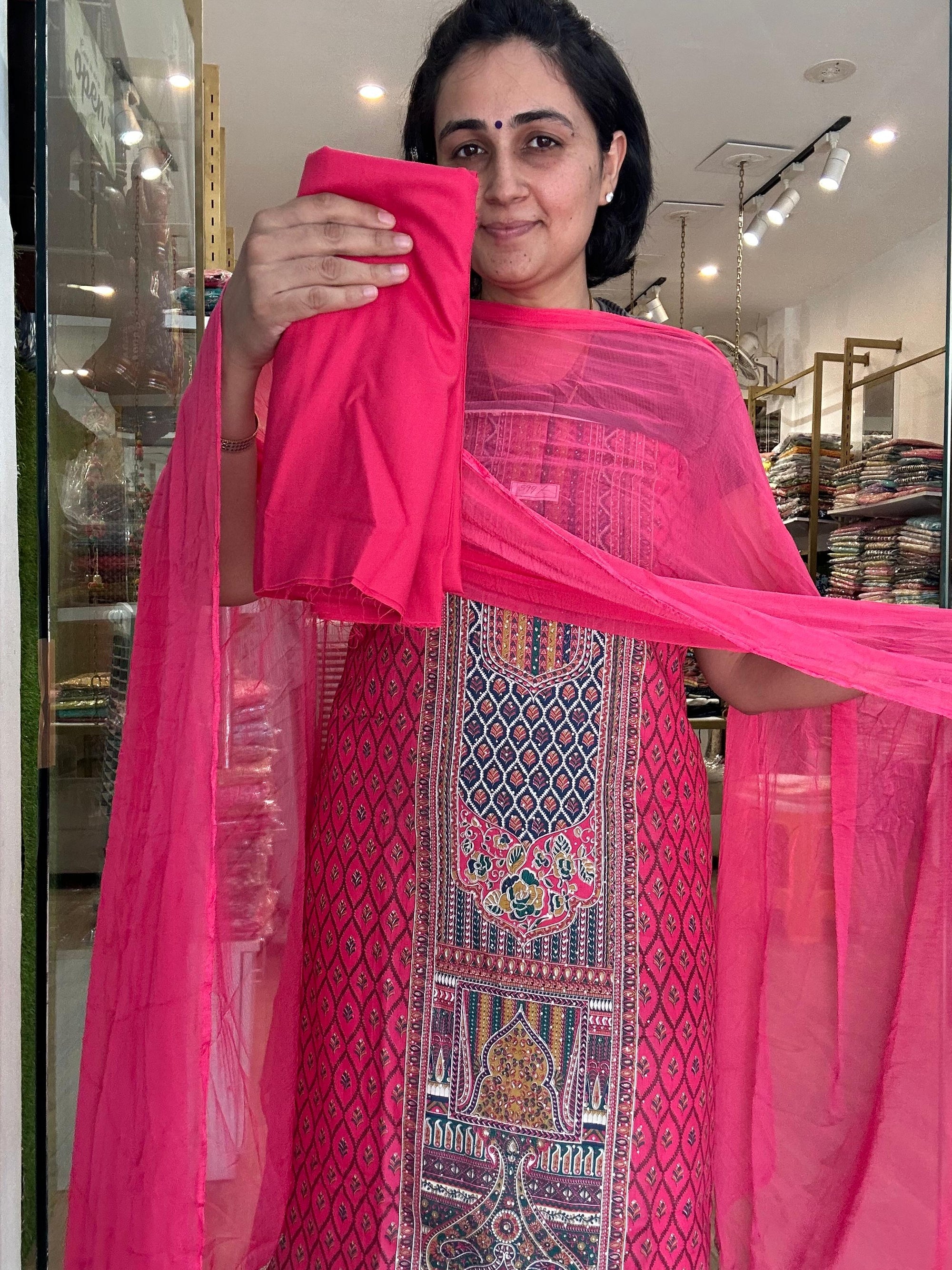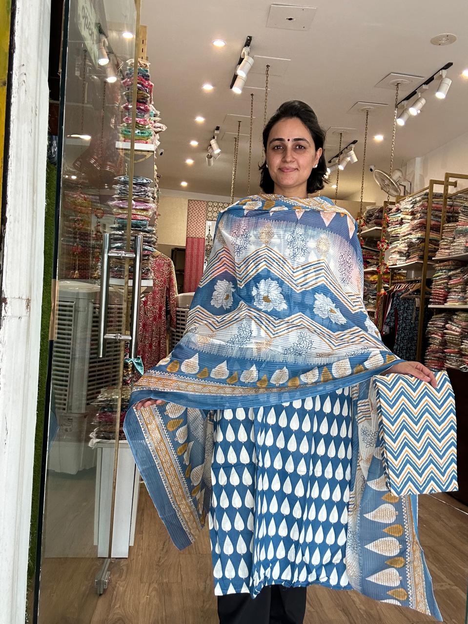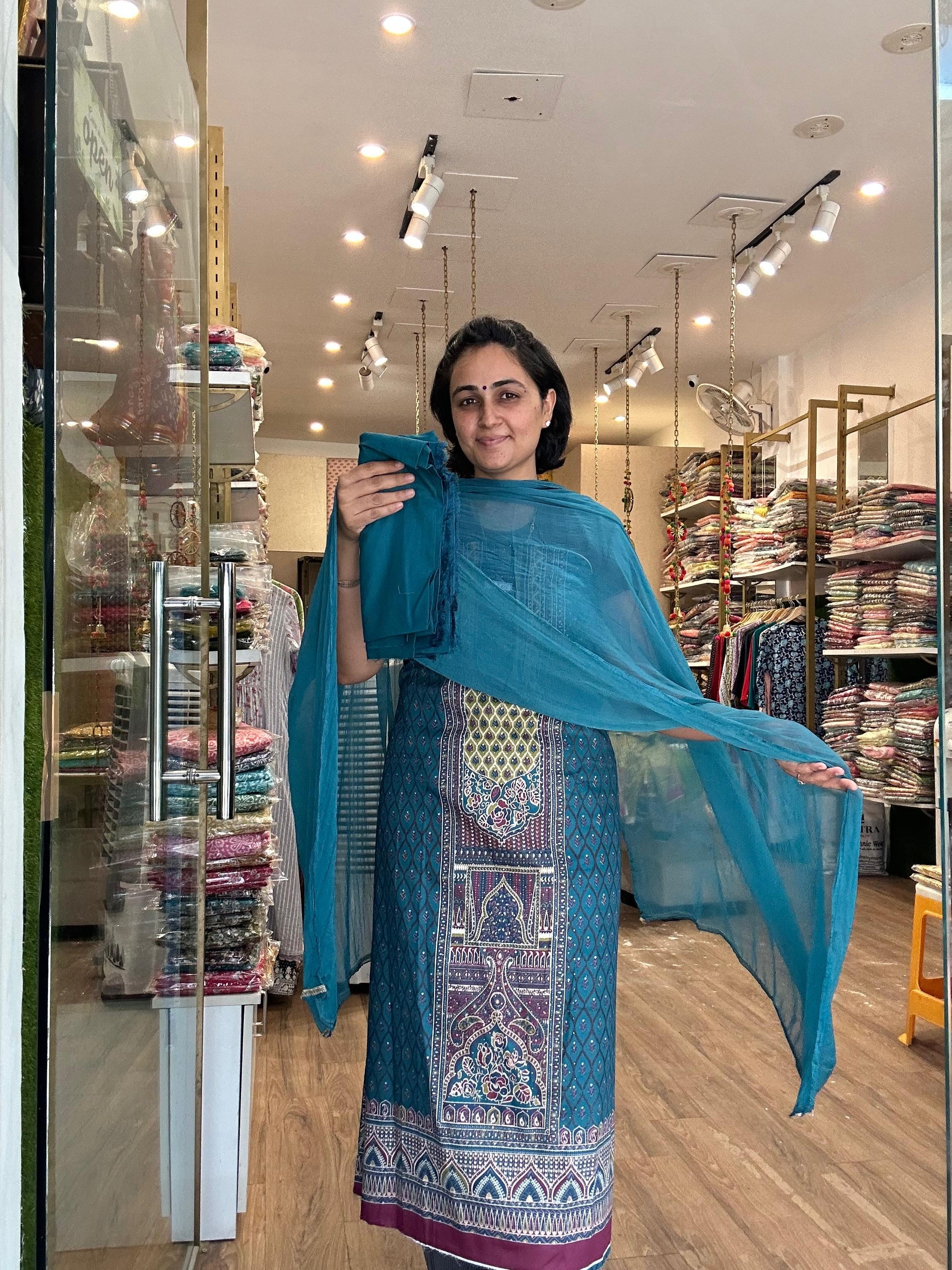 Elegant Cotton Printed Suit Set with Lace & Mirror Work – Multiple Shades