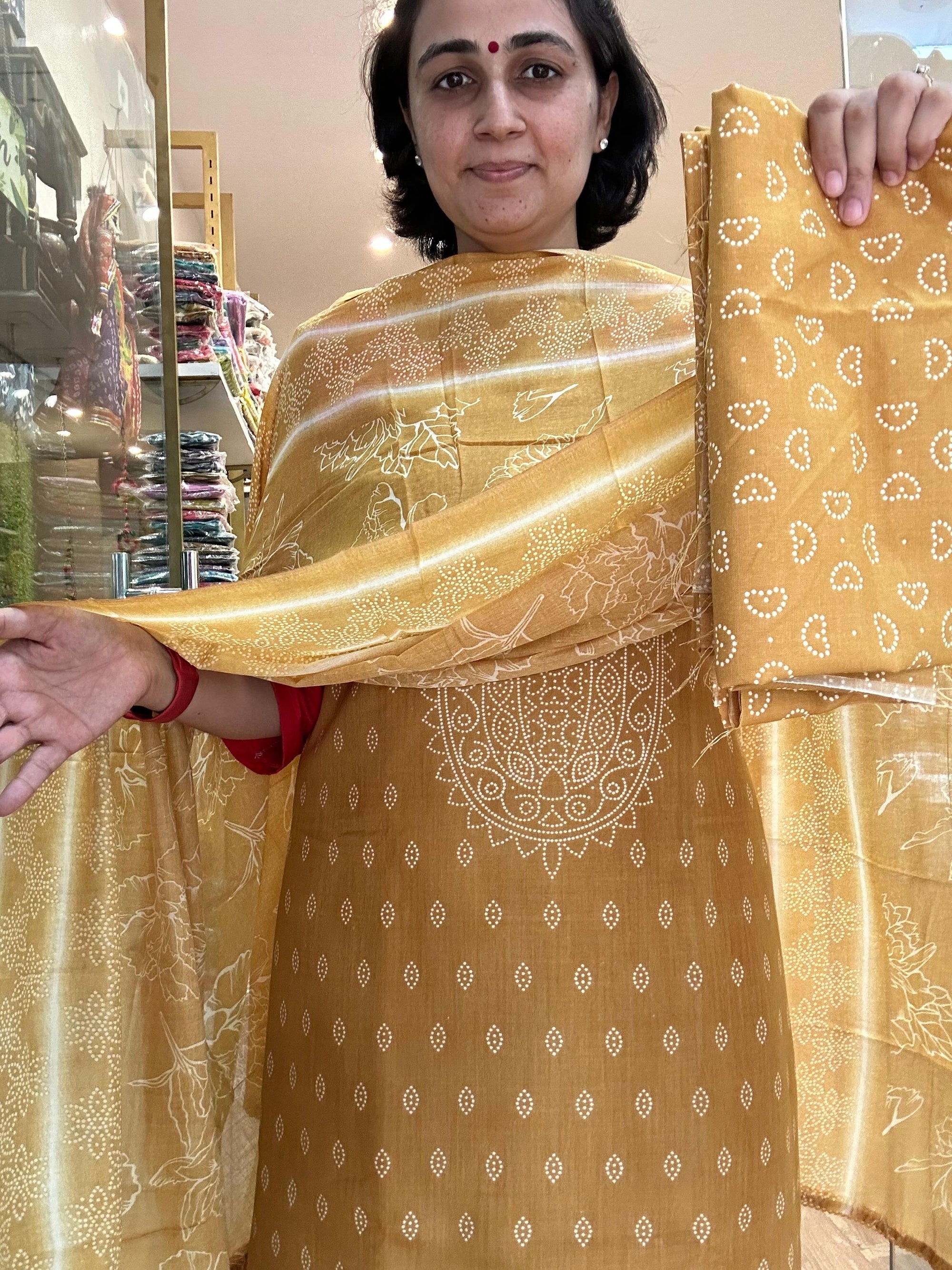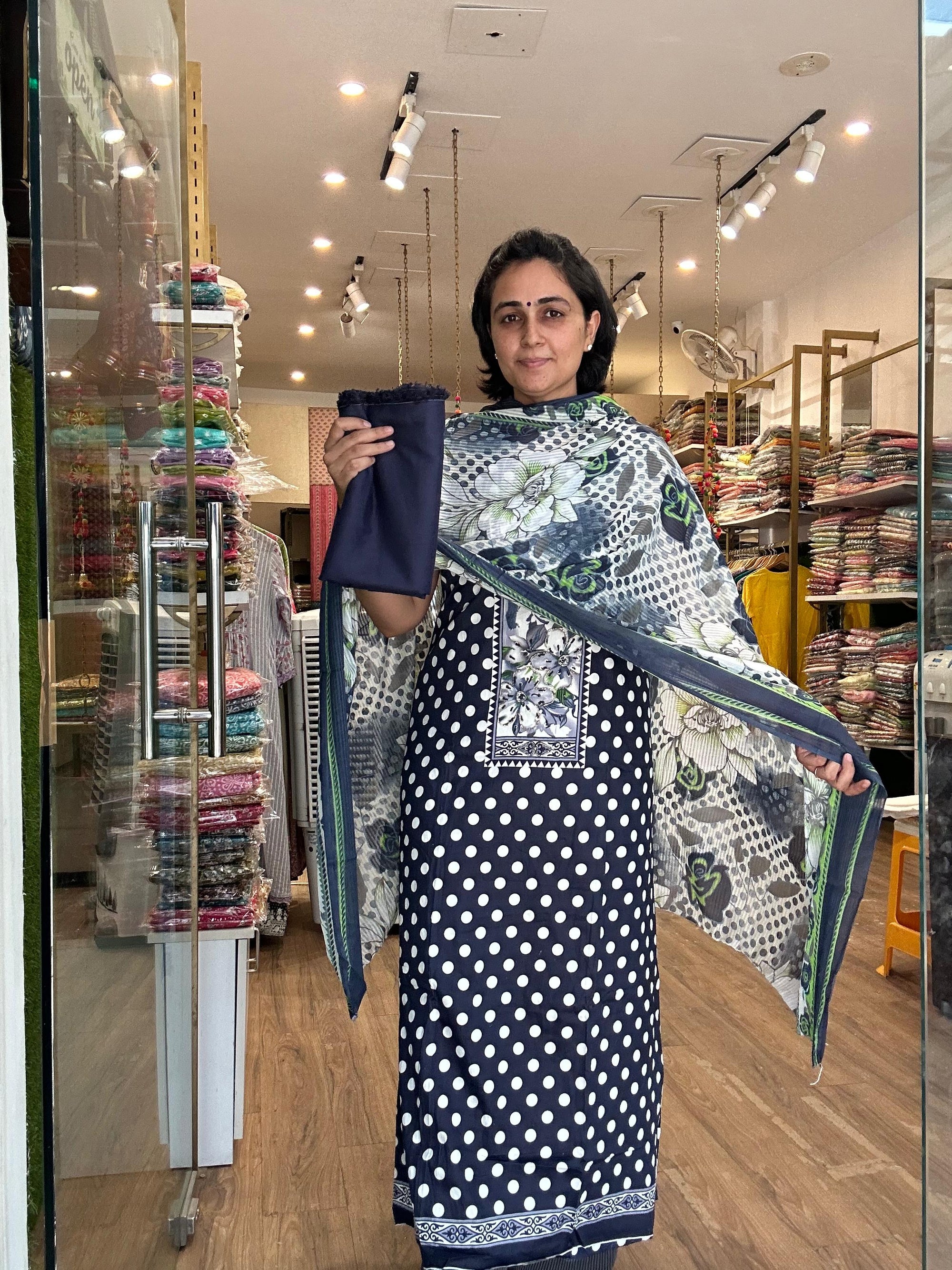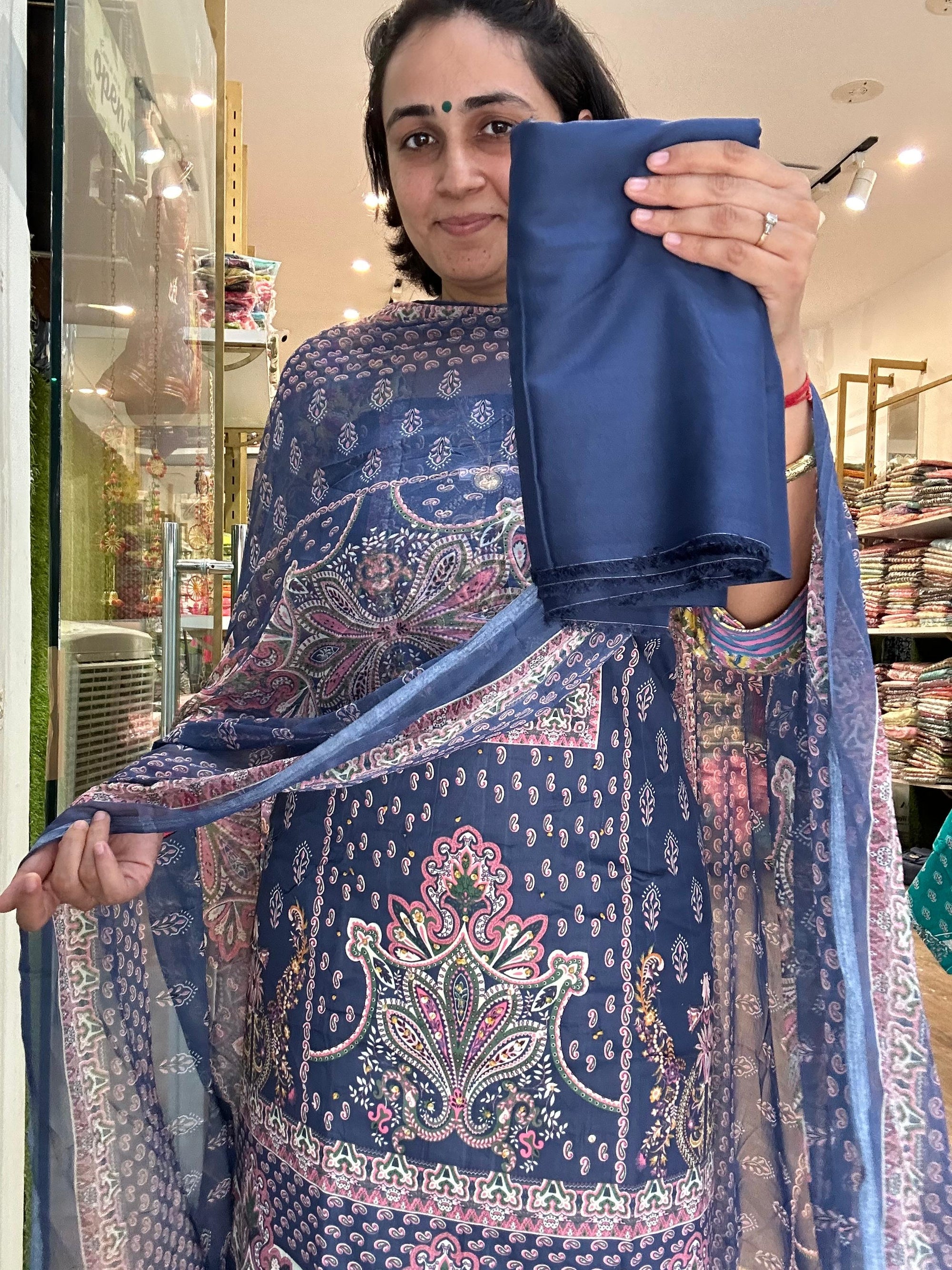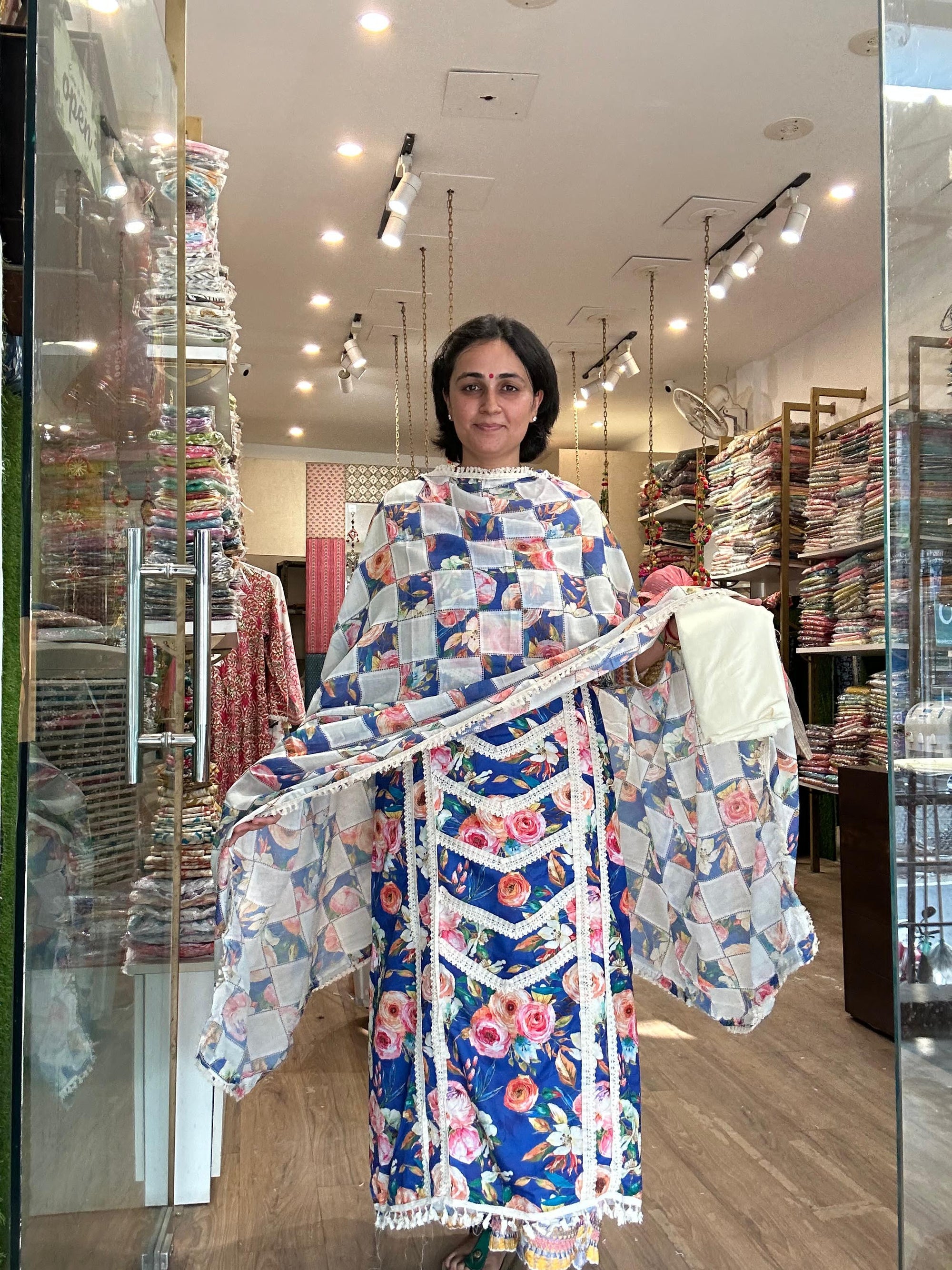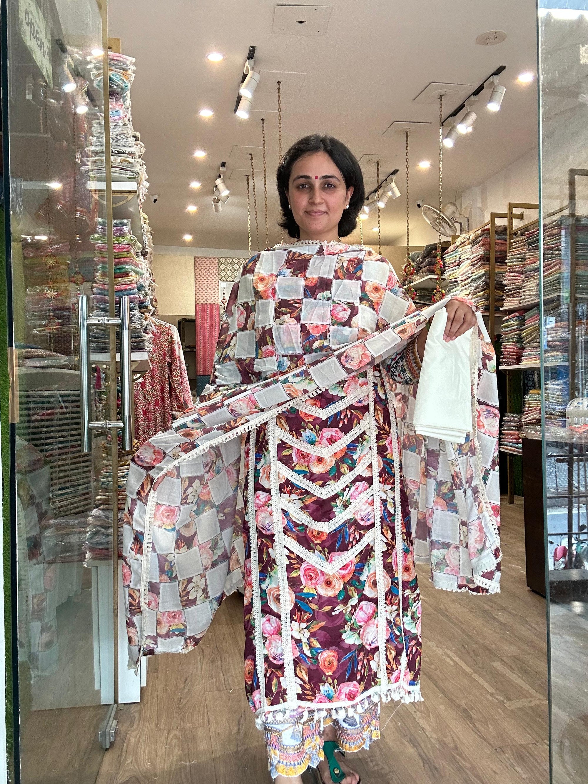 Elegant Cotton Printed Suit Set with Lace & Mirror Work – Multiple Shades