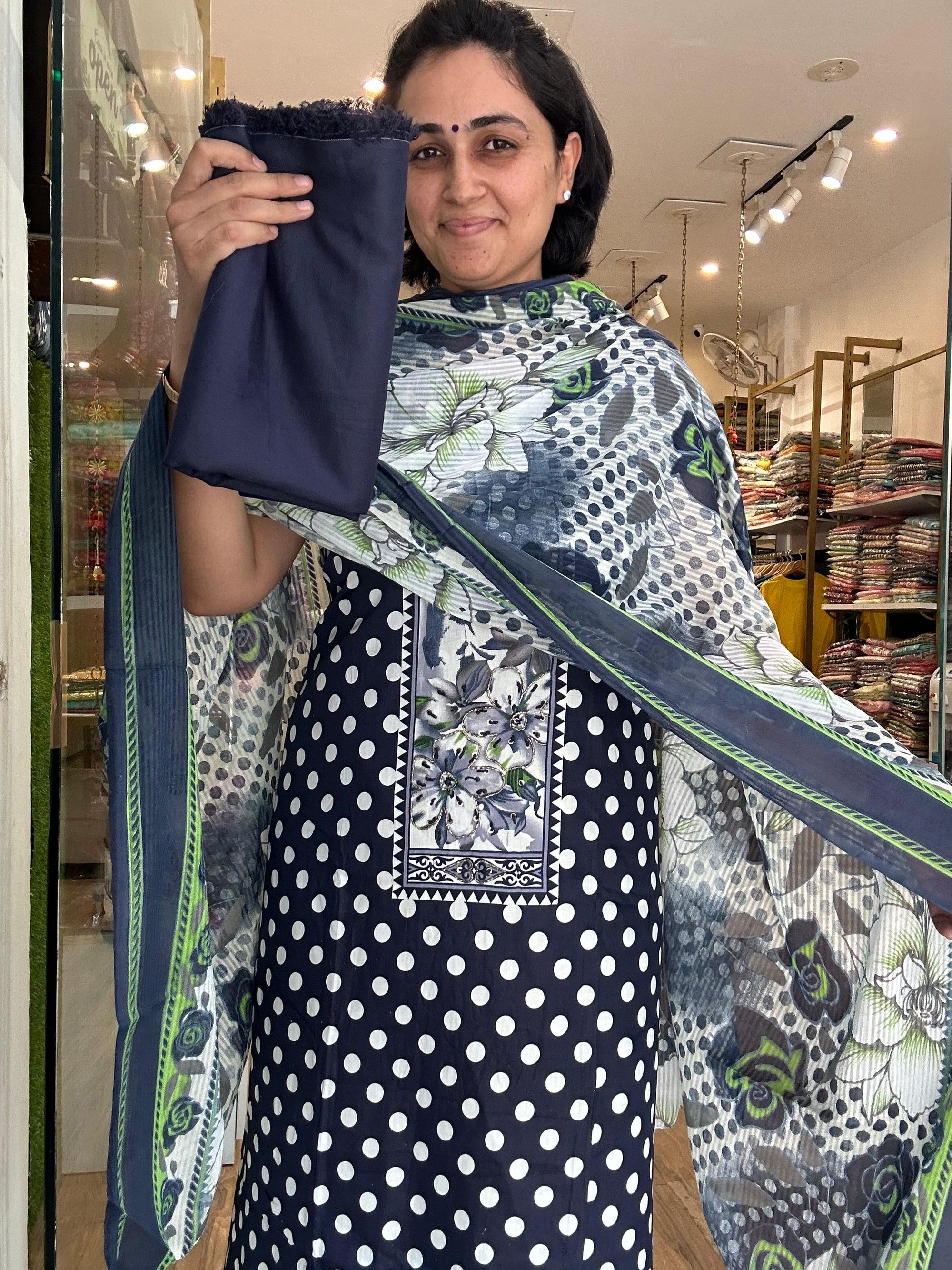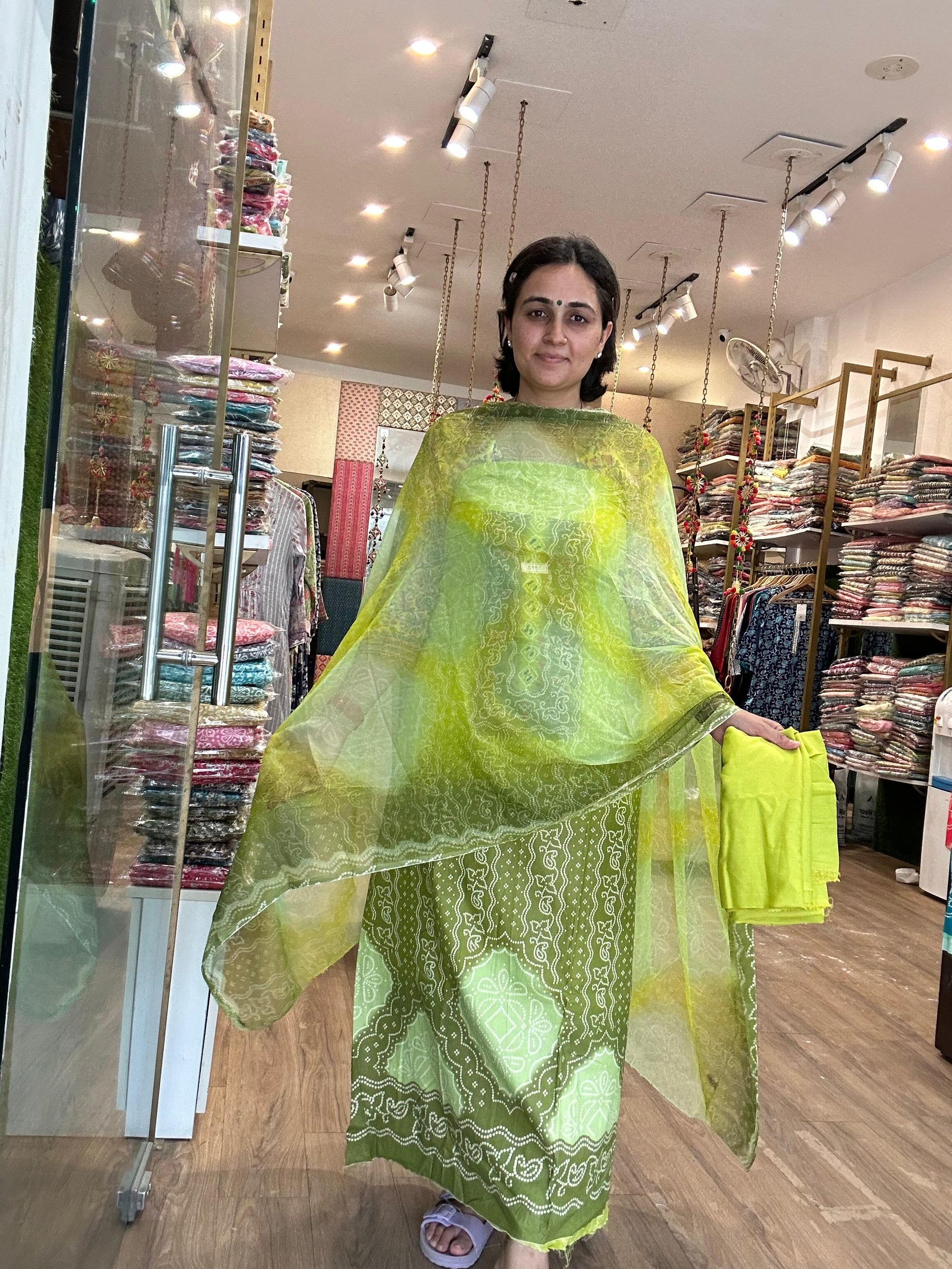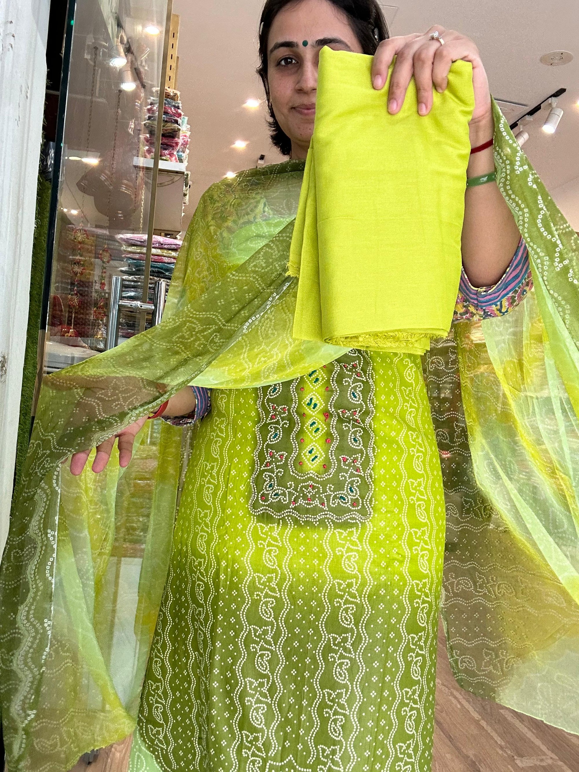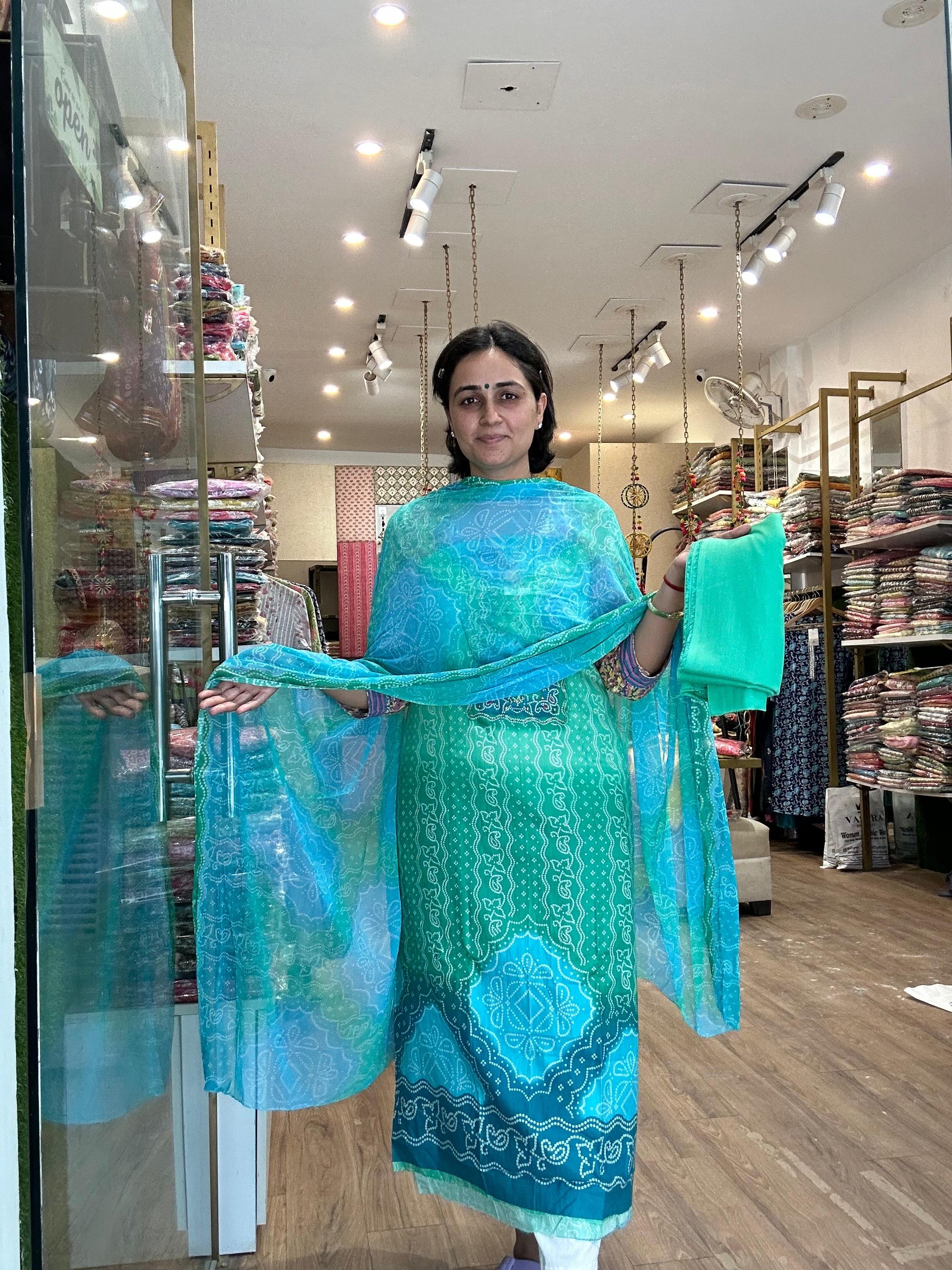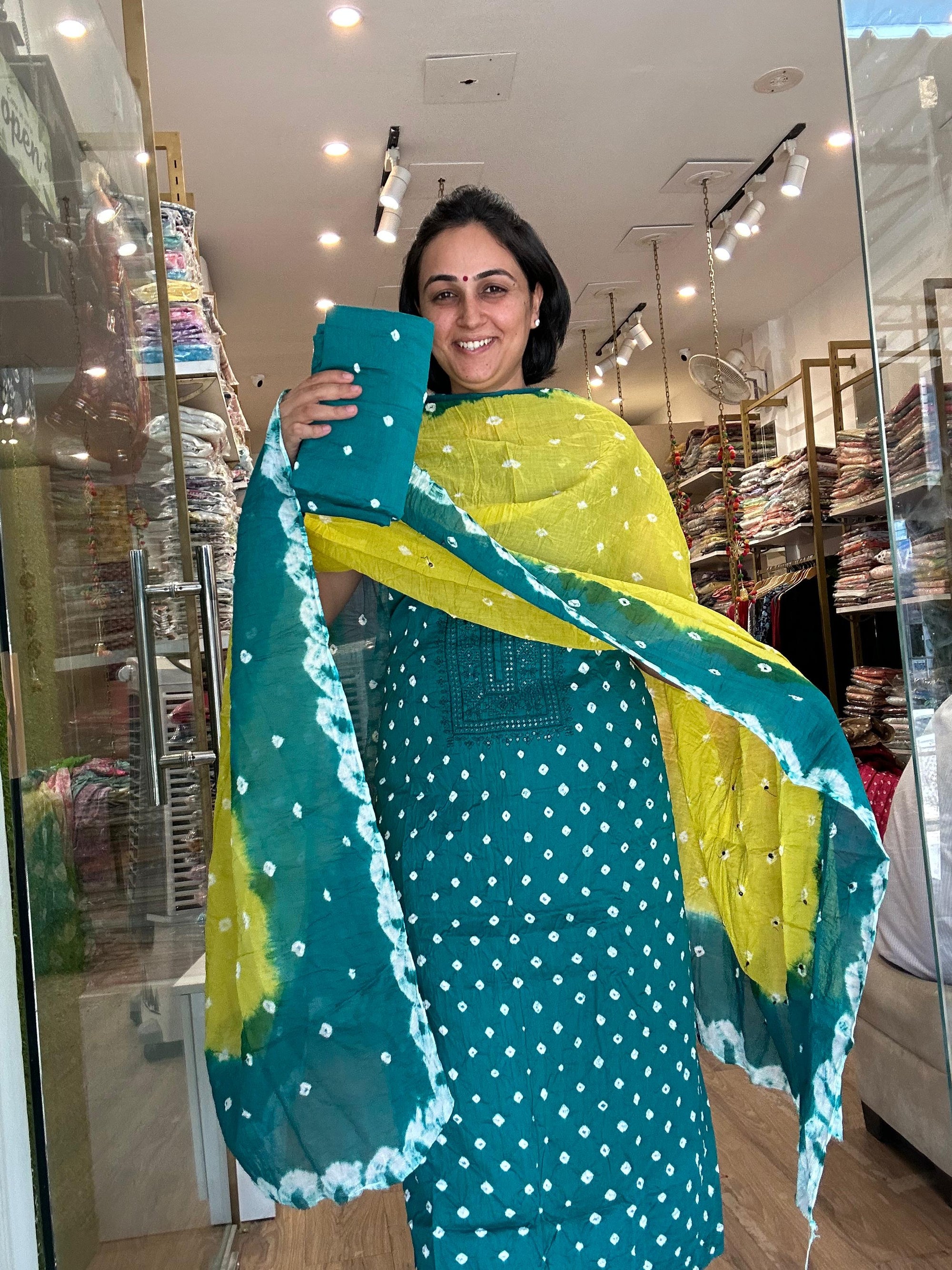 Elegant Cotton Printed Suit Set with Lace & Mirror Work – Multiple Shades