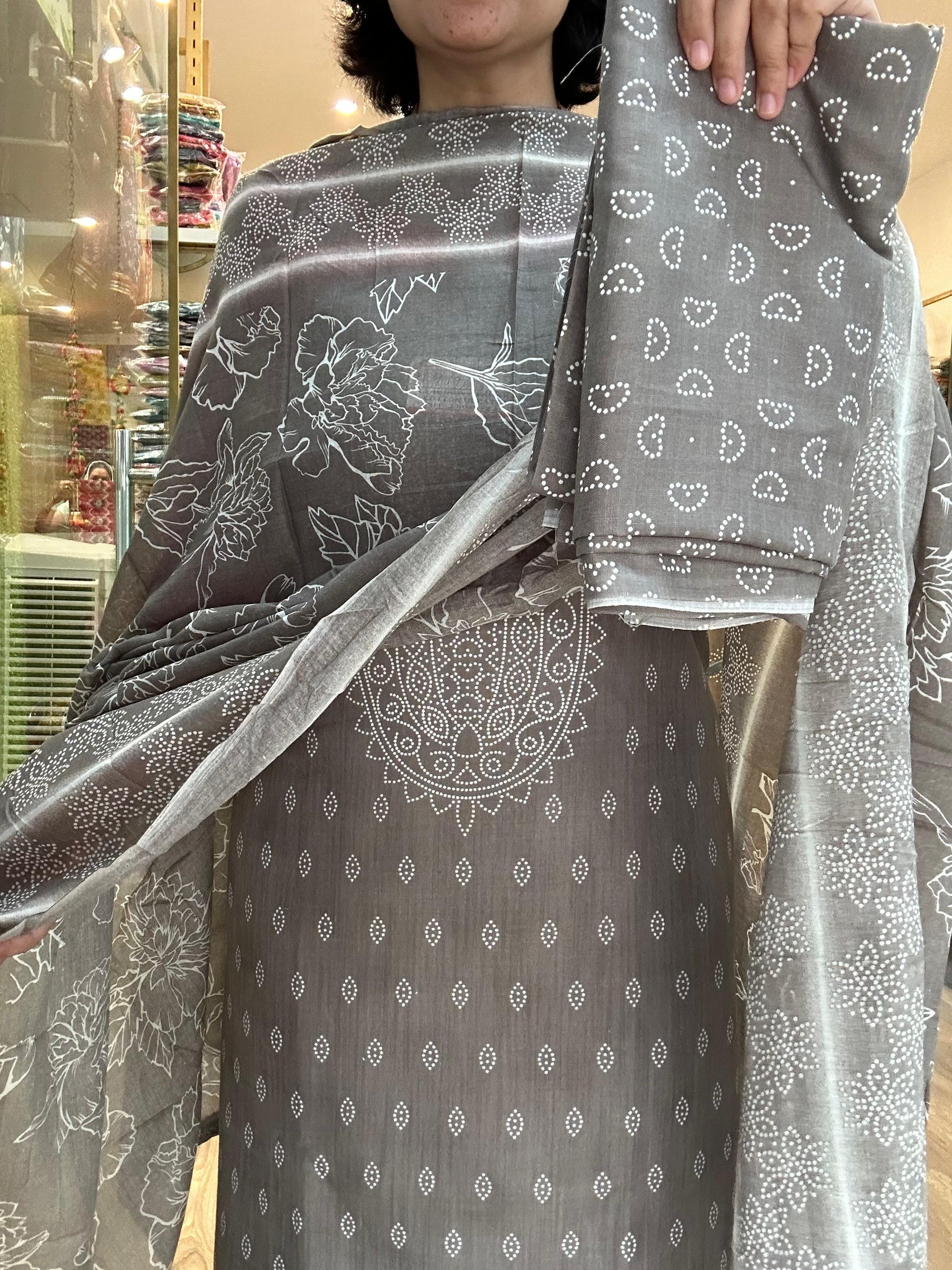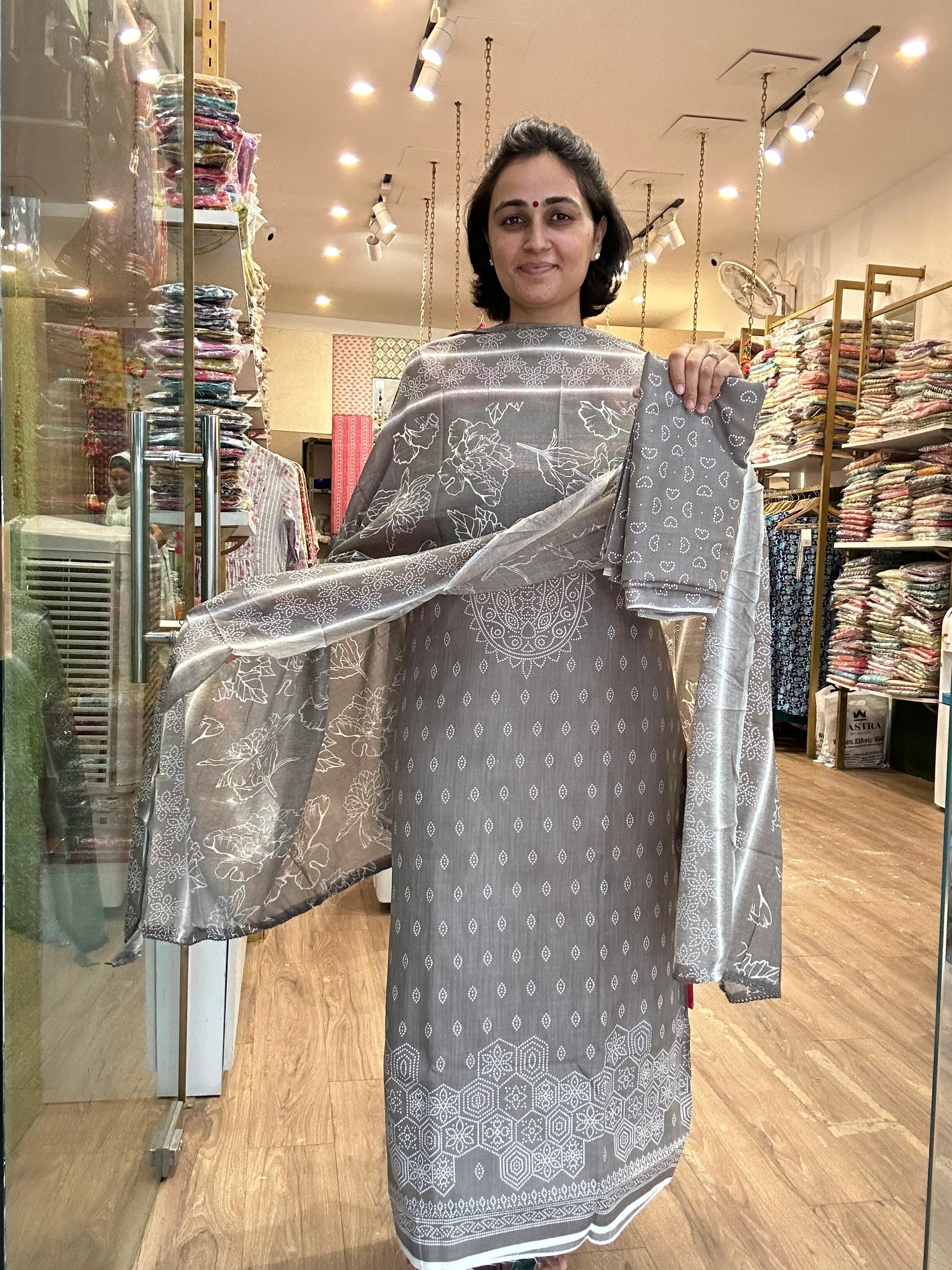 Elegant Grey Floral Print Kurta Set with Dupatta
