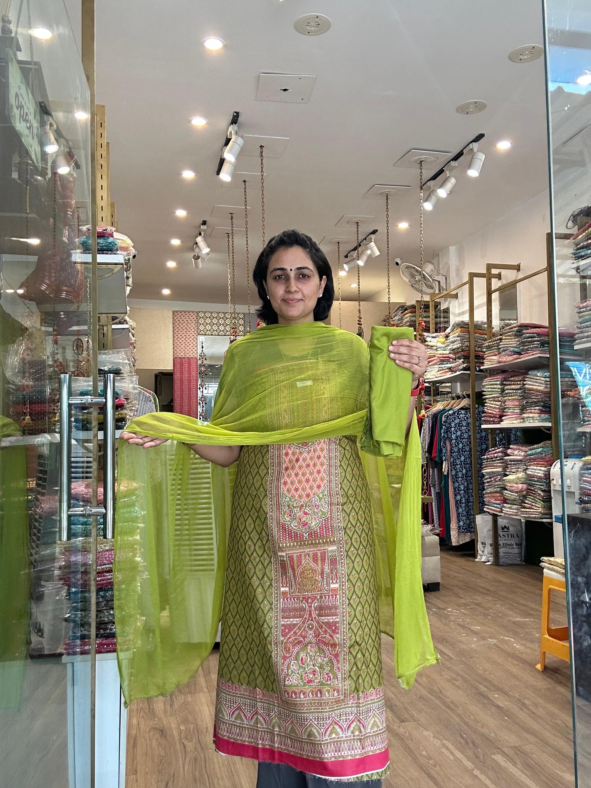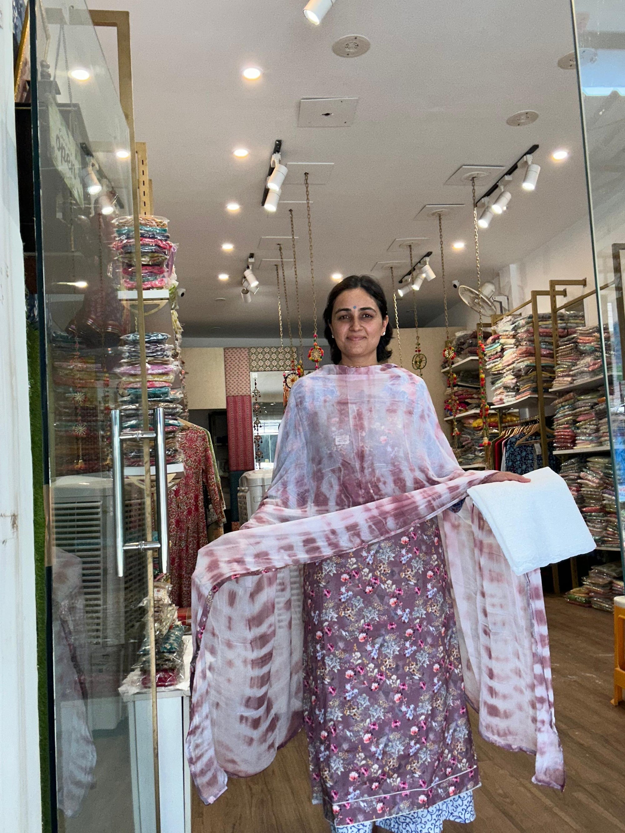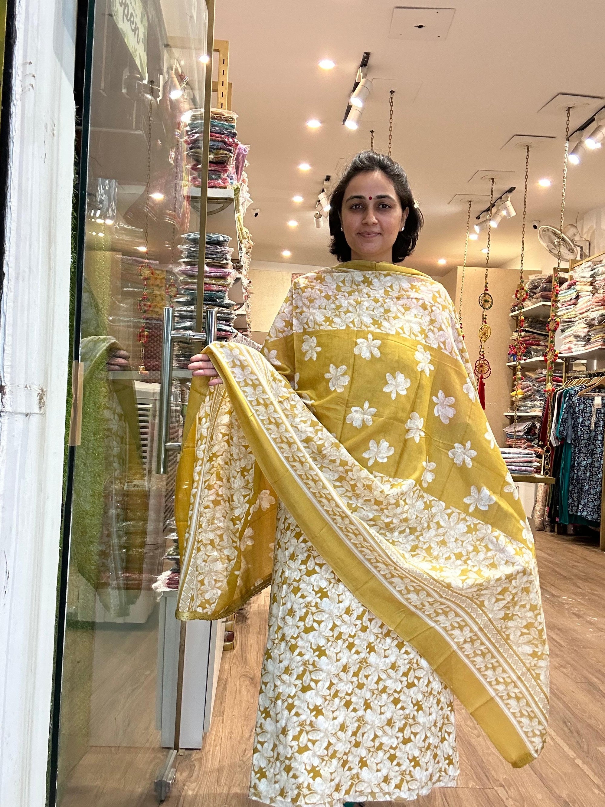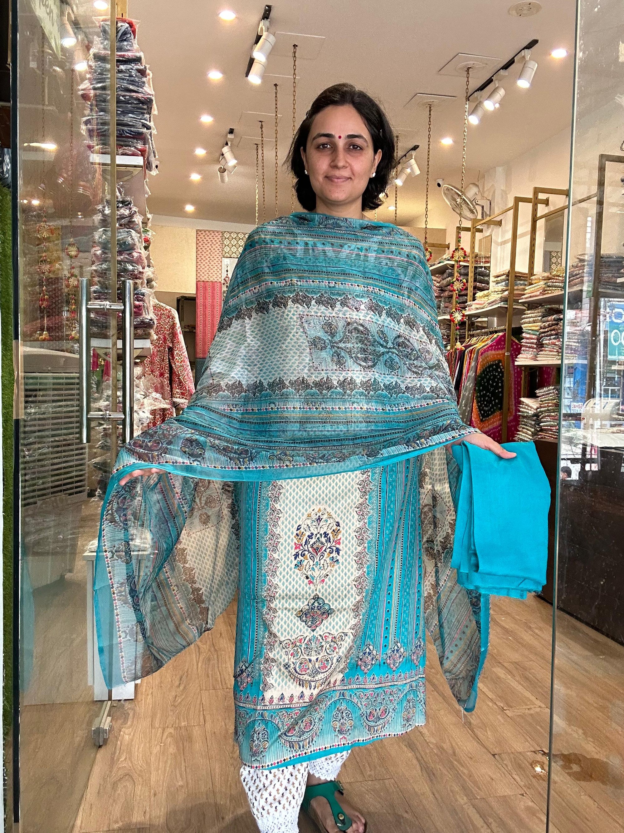Elegant Cream Floral Printed Suit with chiffon Dupatta