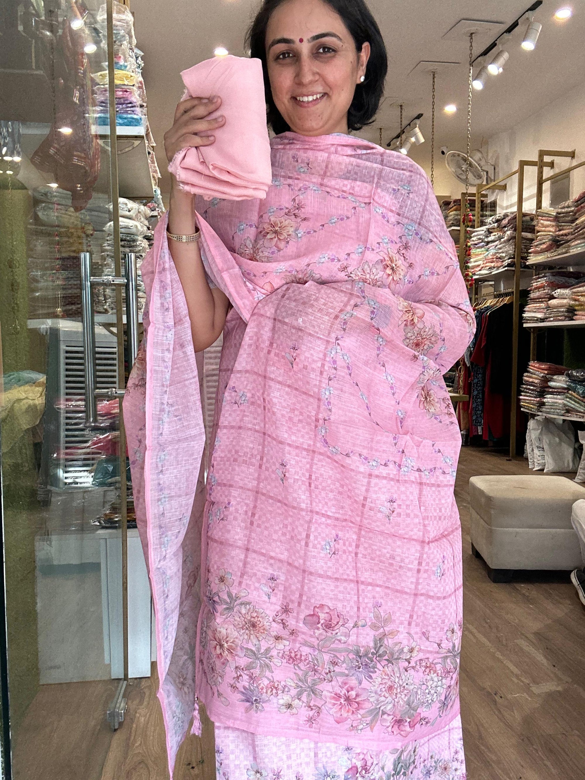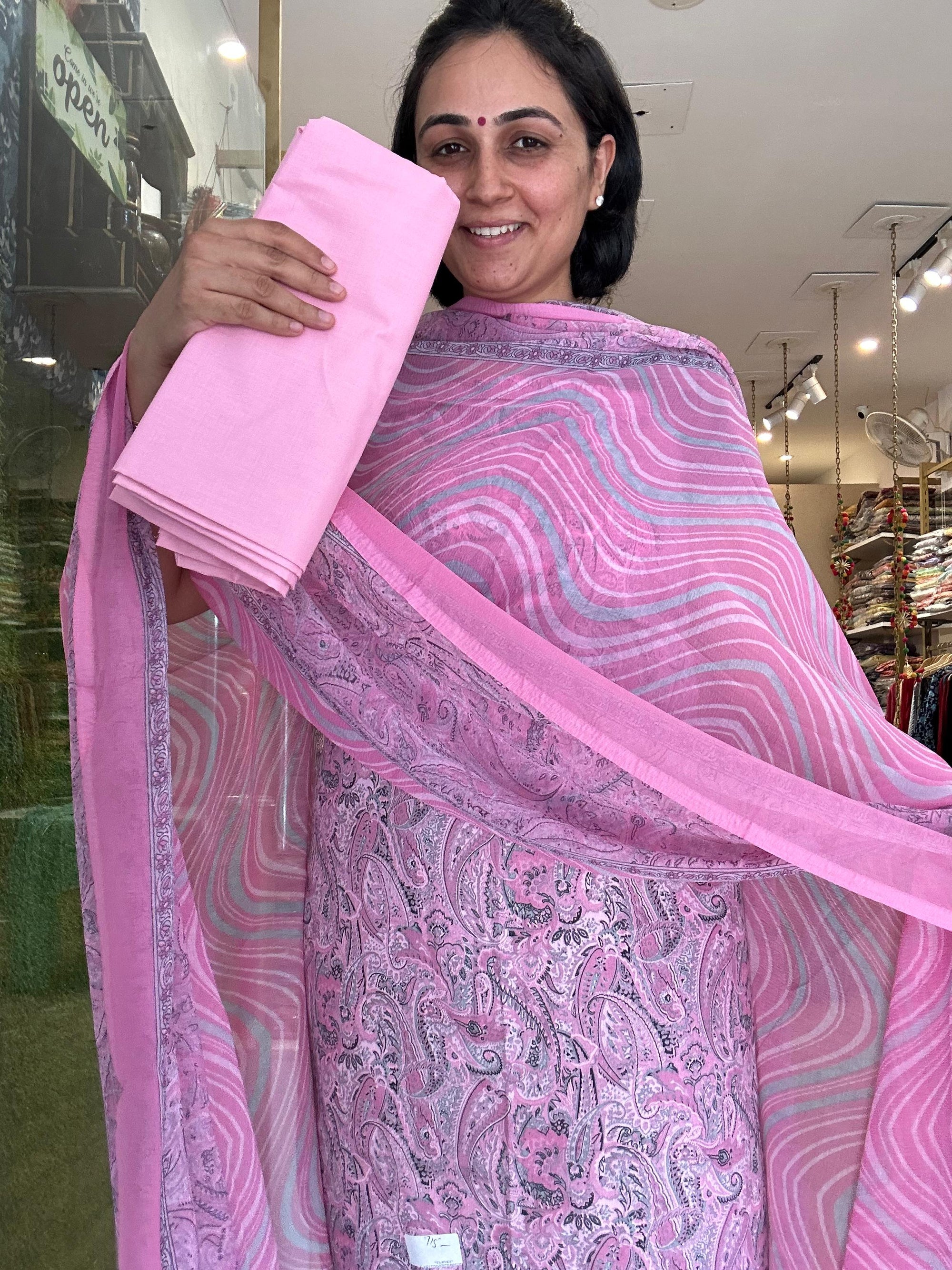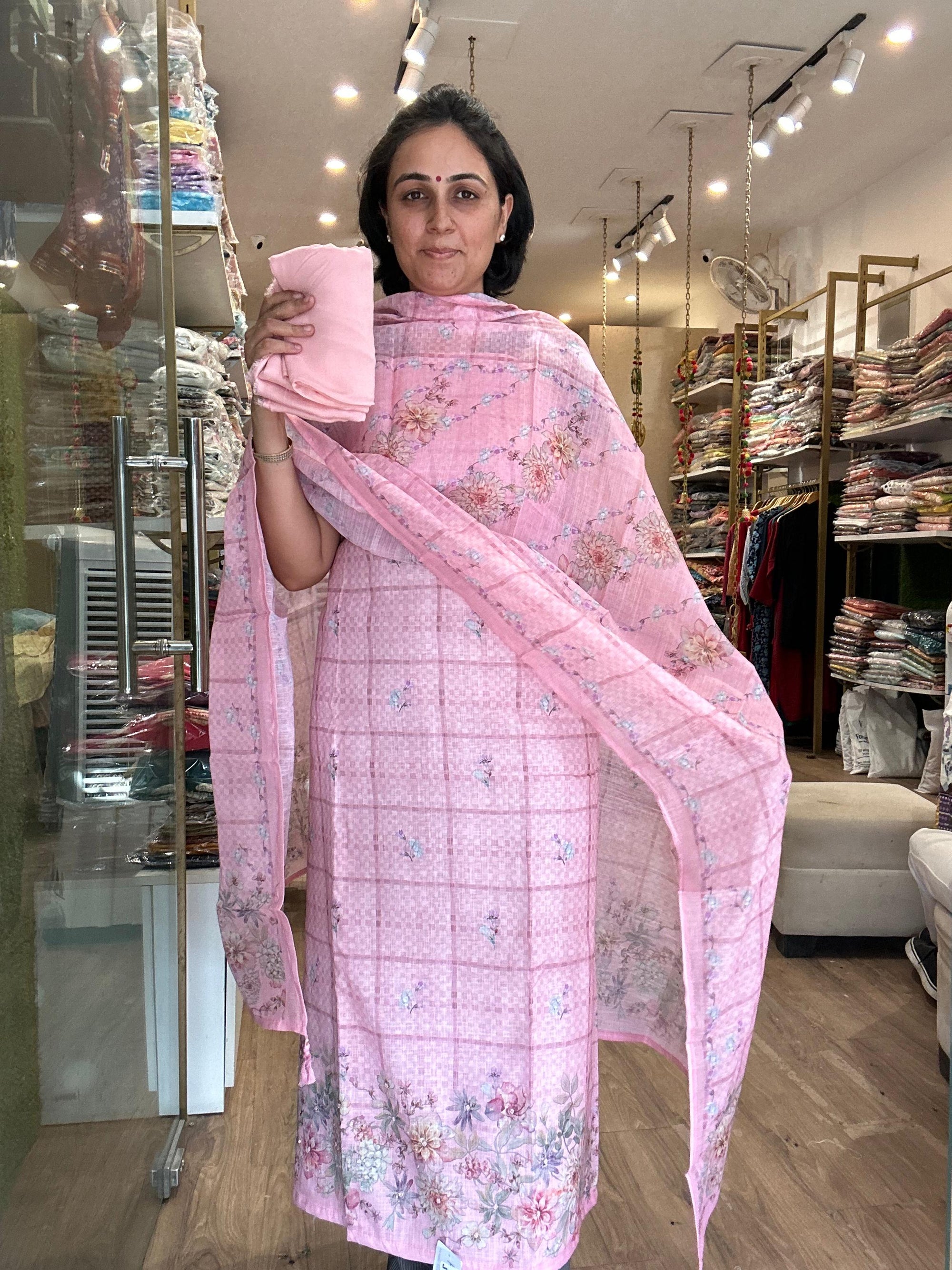 Blush Bloom Pink Cotton Suit Set with Floral Dupatta & Embroidered Bottom