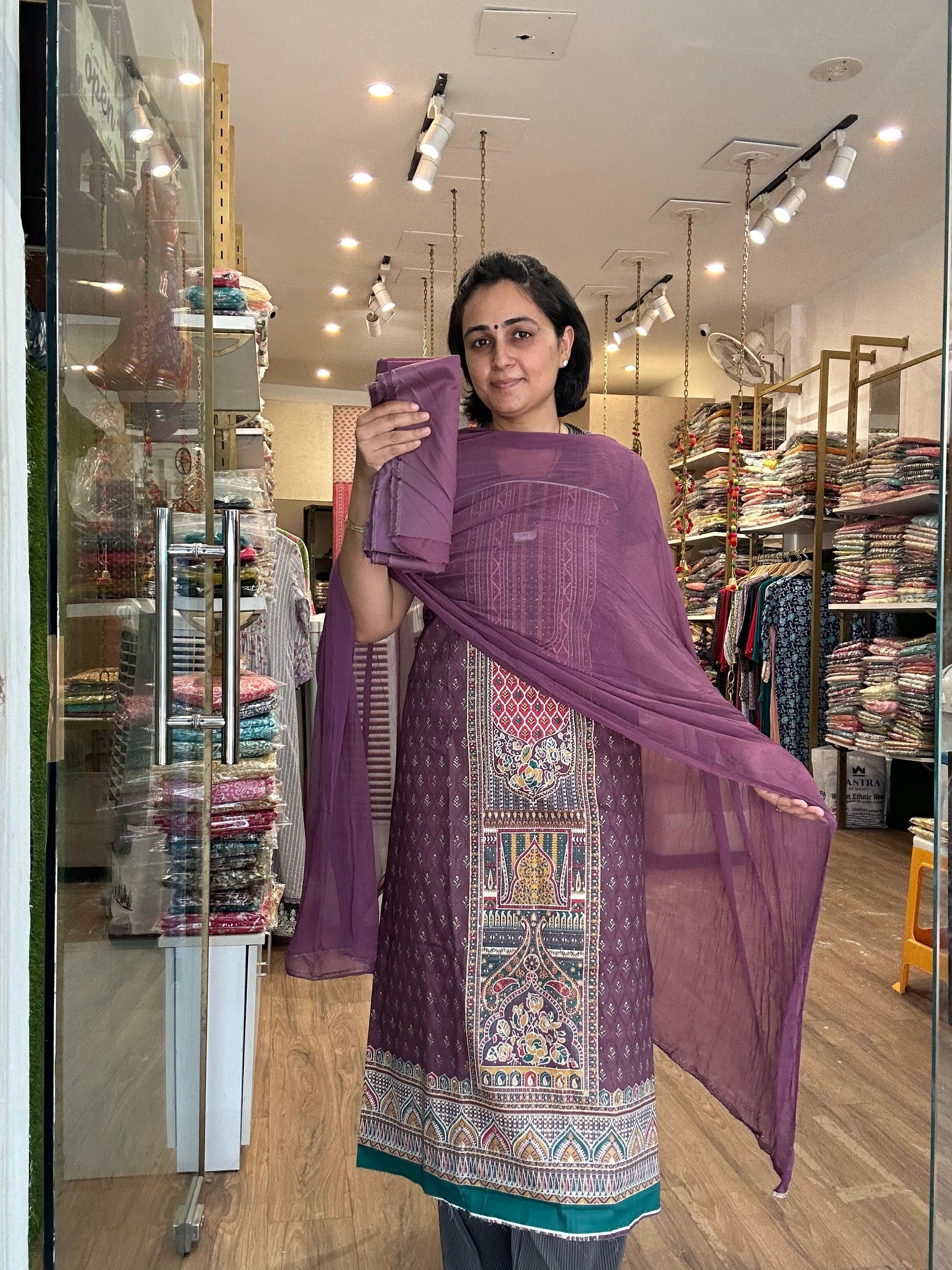 Elegant Paisley Print Suit Set with Soft Dupatta