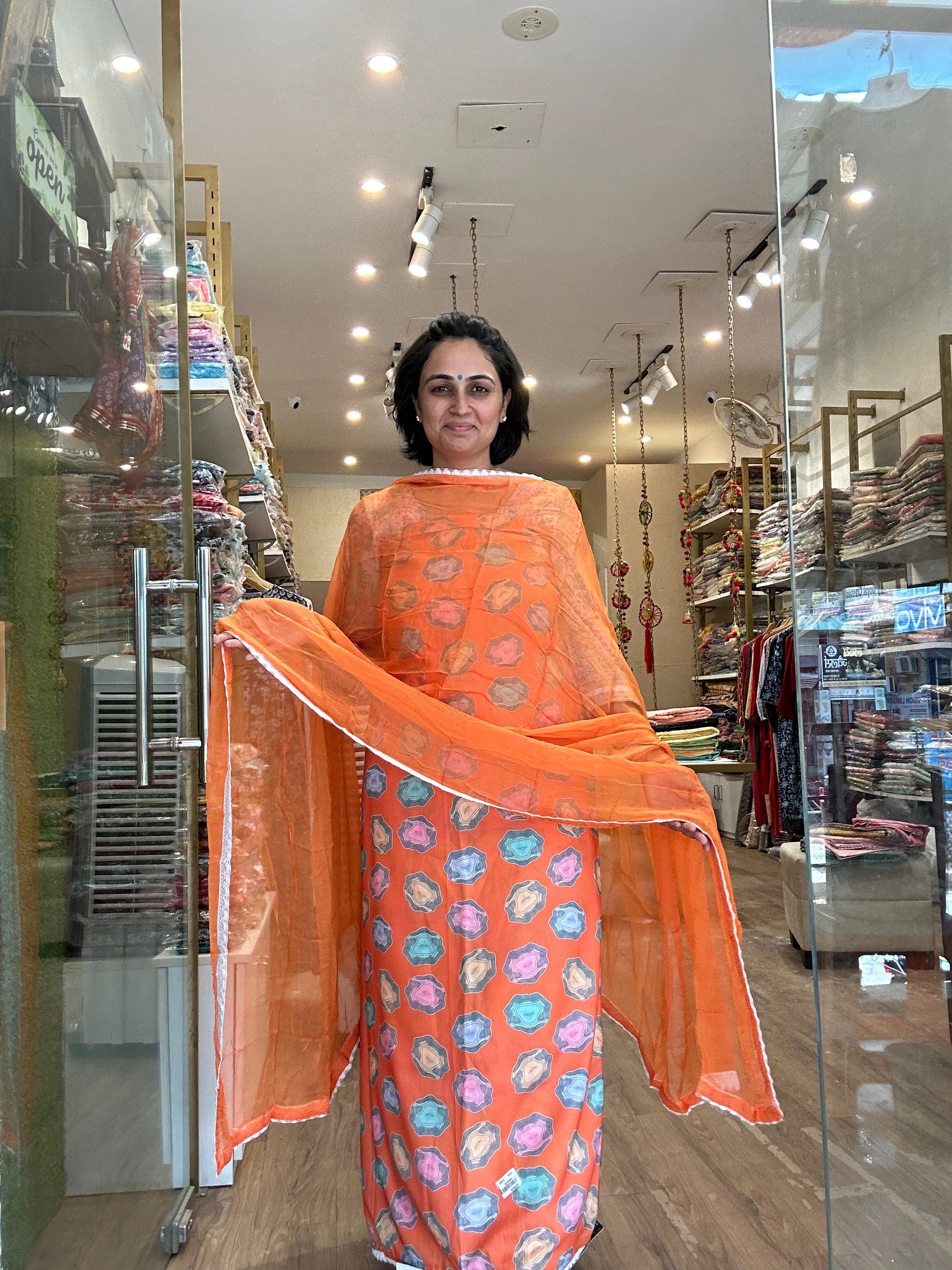 Colorful Geometric and Paisley Print Suit Set with Vibrant Dupatta