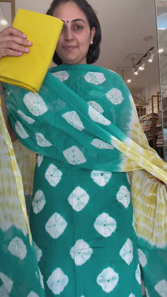 Add a burst of color to your wardrobe with this stunning pink and yellow tie-dye cotton kurti set. The vibrant pink hue with white geometric patterns combined with the striking yellow dupatta creates a lively and energetic look. Perfect for day outings or festive occasions, this comfortable and breathable set is designed to keep you stylish while offering maximum comfort. Whether you’re attending a casual gathering or simply enjoying a sunny day, this kurti set adds a chic and modern twist to traditional wear. Embrace the cheerful spirit and elevate your fashion game with this unique piece!